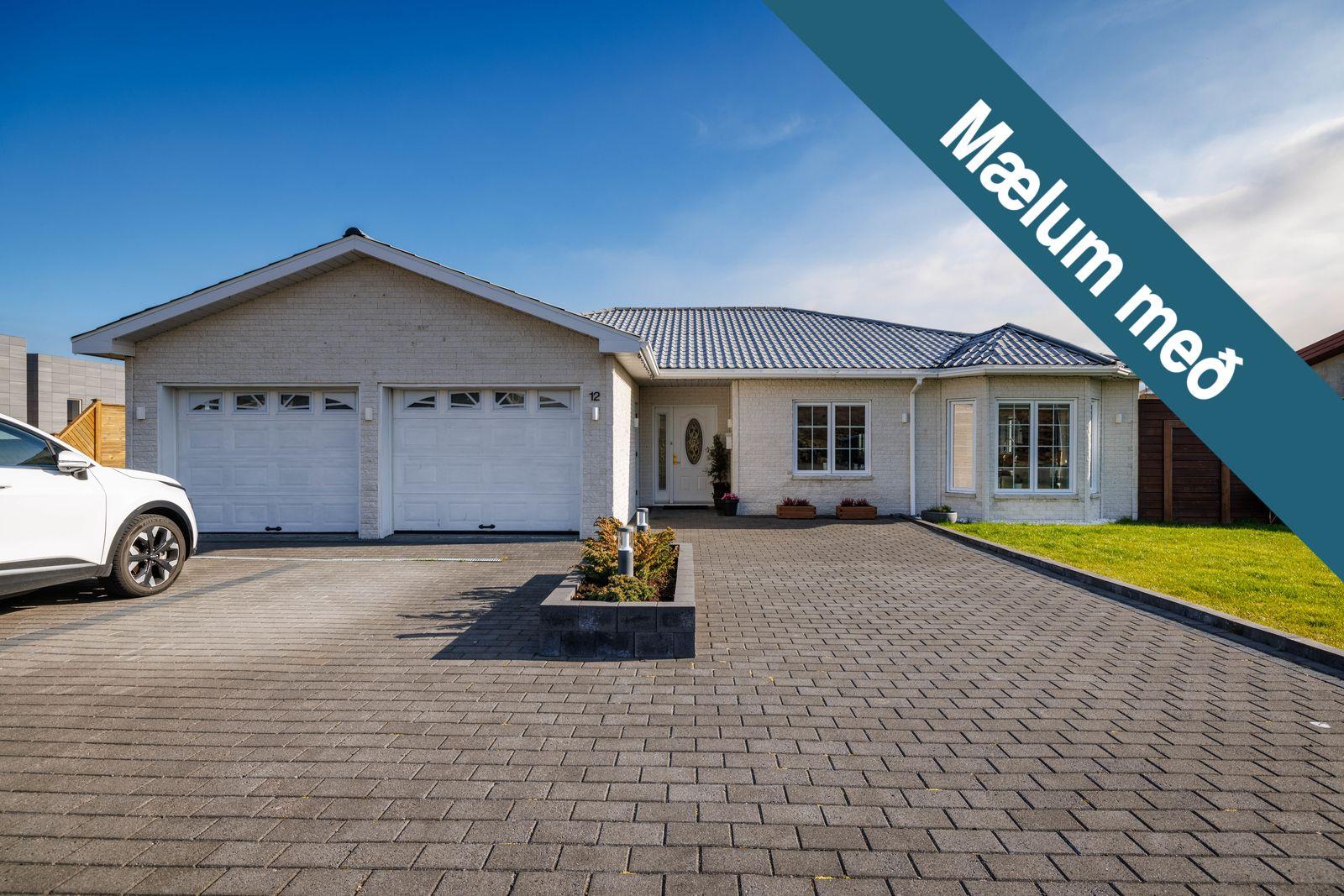 Sigurjon@allt.isEignin skiptist í forstofu, stofu og eldhús í opnu rými, gengið út á stóran sólpall yfirbyggðan að hluta og heitur pottur. Herbergjagangur með gestasnyrtingu, rúmgóðu baðherbergi ásamt tveimur barnaherbergi. Hjónaherbergi með stóru fataherbergi sem getur líka verið fjórða barnaherbergið. Rúmgott þvottahús. Bílskúr tvöfalldur, lakkað gólf og felli stigi upp á risloft.Forstofa: Rúmgóð. Svartar flísar á gólfi. Útihurð með skrautgleri í. Góðir skápar. Millihurð með gleri.