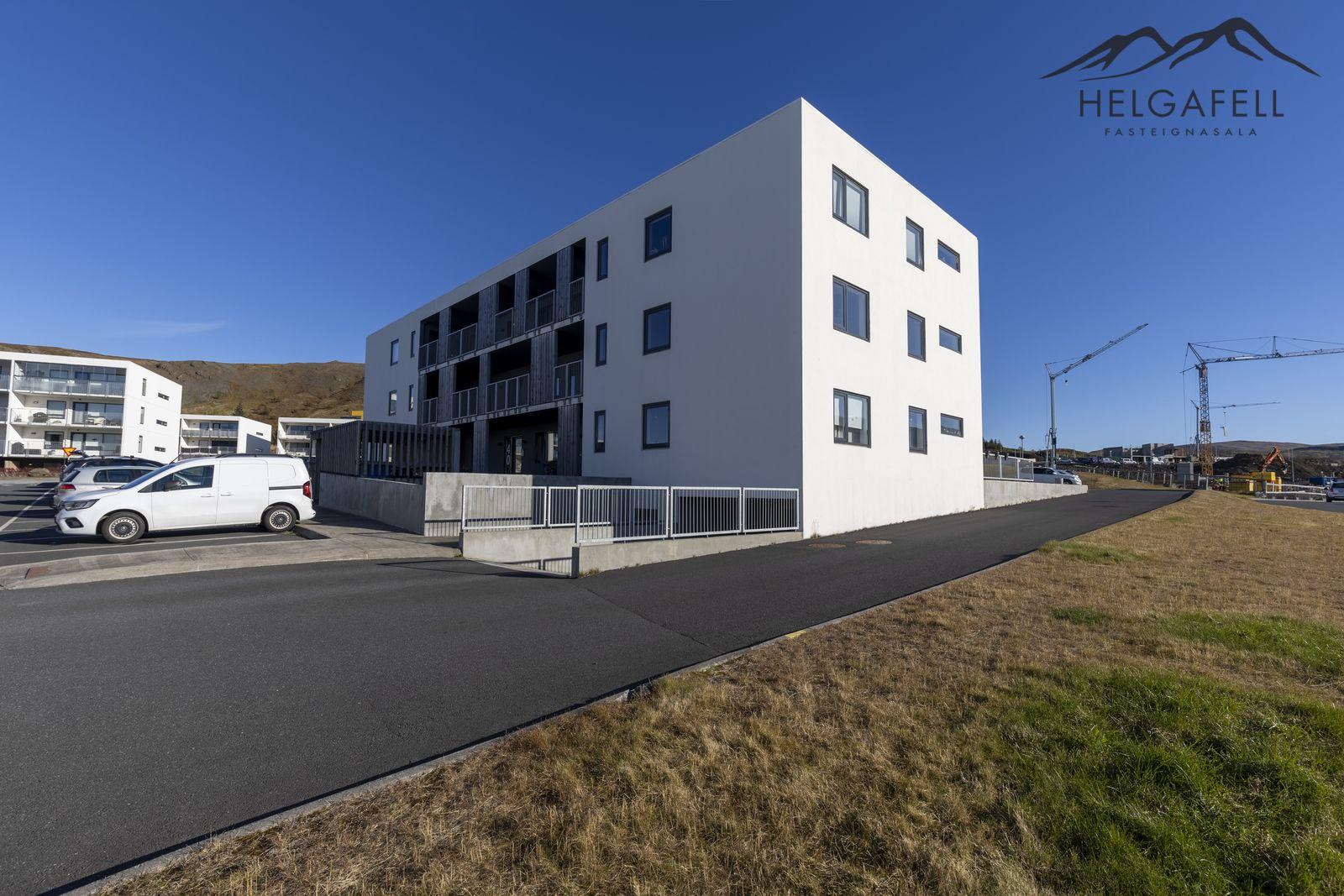Birt stærð eignar er 98,3 fm., þar af er 5,6 fm. sérgeymsla í sameign. Sérstæði í bílageymsluhúsi þar sem gert er ráð fyrir hleðslustöð fyrir rafbíla.