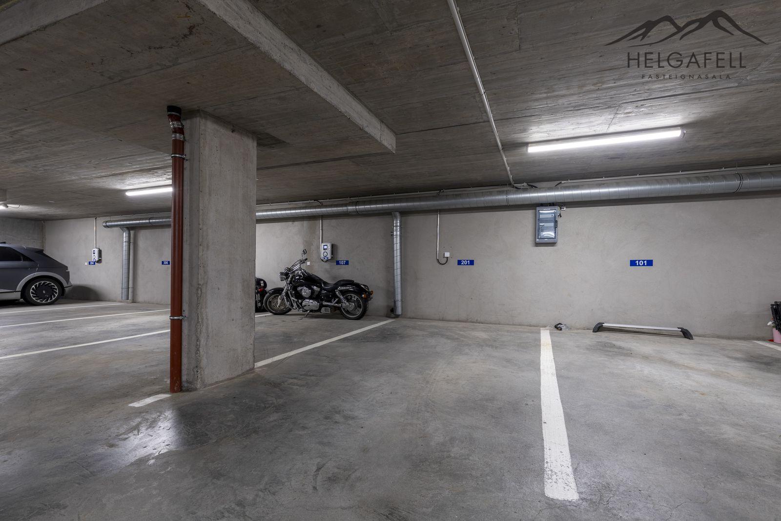 Bílastæði í lokaðri bílageymslu, merkt 01B02, fylgir eigninni.