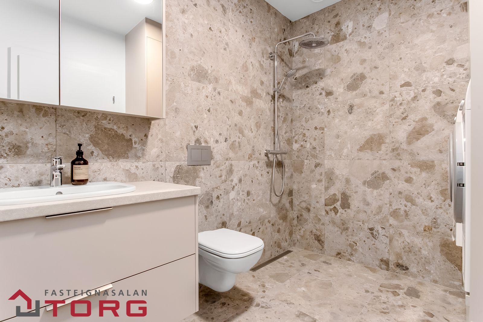 Sameignir:Stigagangar: Málaðir veggir, teppalögð gólf, flísar í anddyri, burstuð stállyfta.