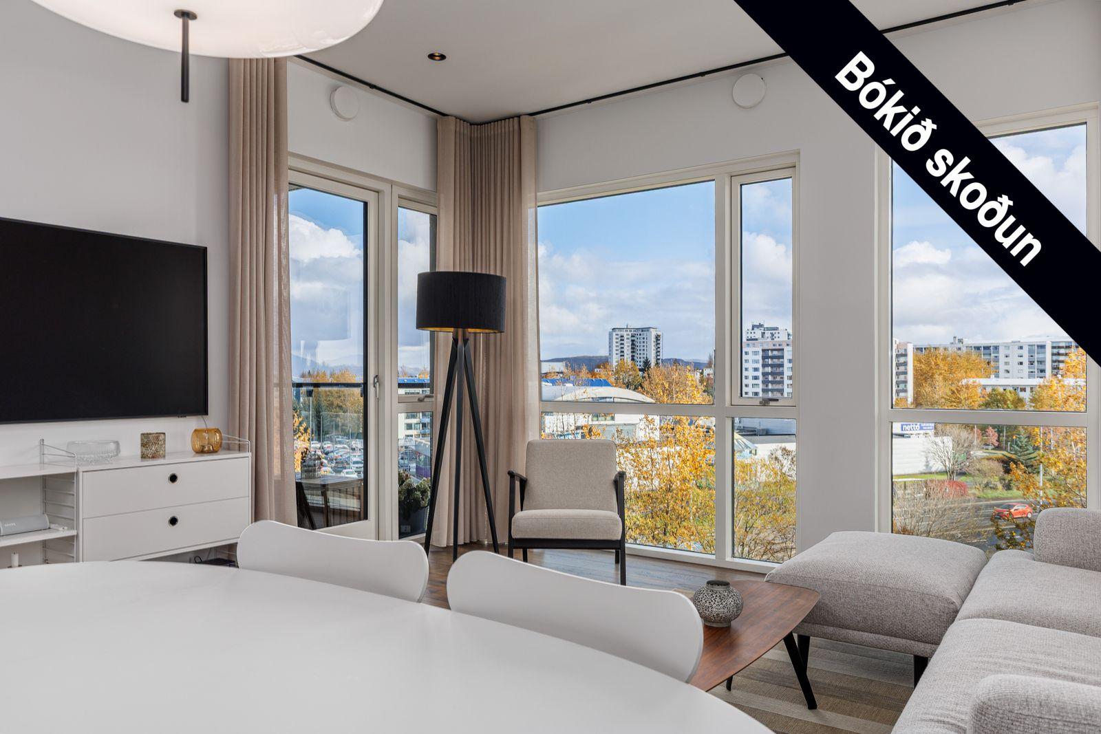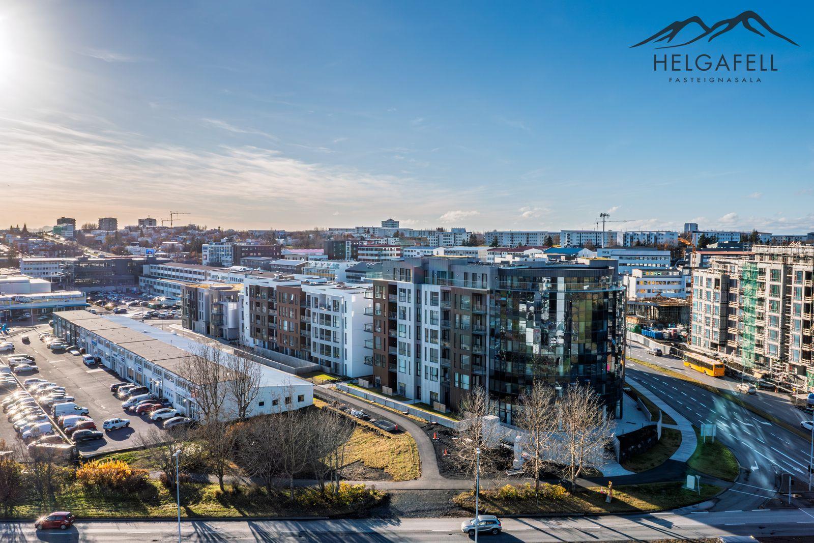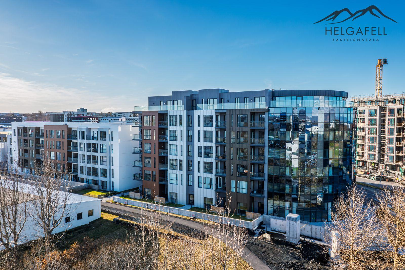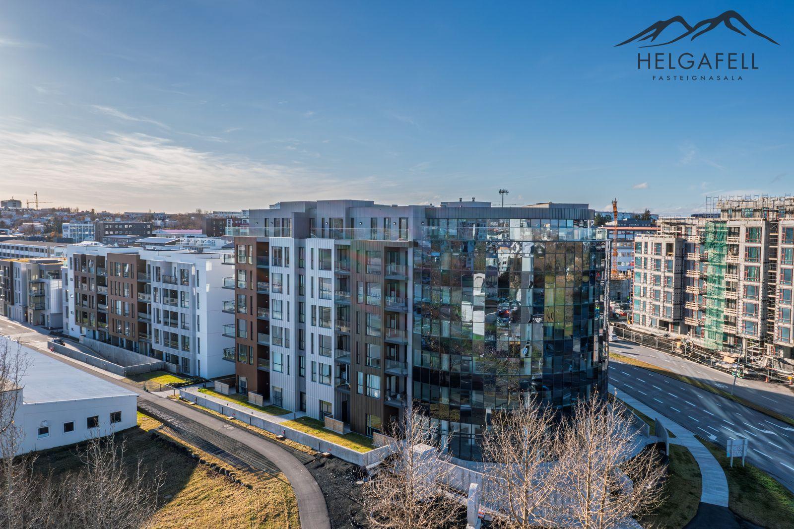 Helgafell fasteignasala, Hólmar Björn Sigþórsson löggiltur fasteignasali og Guðmundur Hjalti Sveinsson aðstoðarmaður fasteignasala kynna í einkasölu Grensásveg 1F, íbúð 404, 108 Reykjavík:Um er að ræða nýja og einstaklega glæsilega 2ja herbergja íbúð á fjórðu hæð í vönduðu 7 hæða fjölbýlishúsi. Gólfsíður gluggar með fallegu útsýni. Birt stærð eignar er 76,5 fm, þar af er íbúð 71,2 fm og sérgeymsla 5,3 fm.