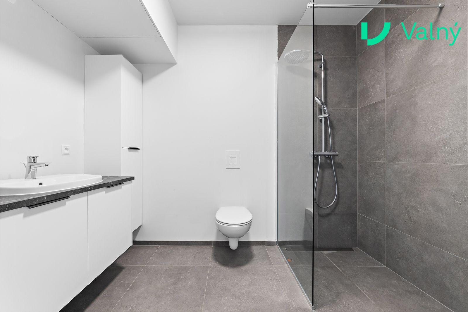 Baðherbergi flísalagt (30×60 cm eða 60×60 cm þar sem við á) á gólfi og veggjum að hluta. Upphengt salerni, handklæðaofn og flísalögð walk-in sturta. Speglar fylgja ekki.