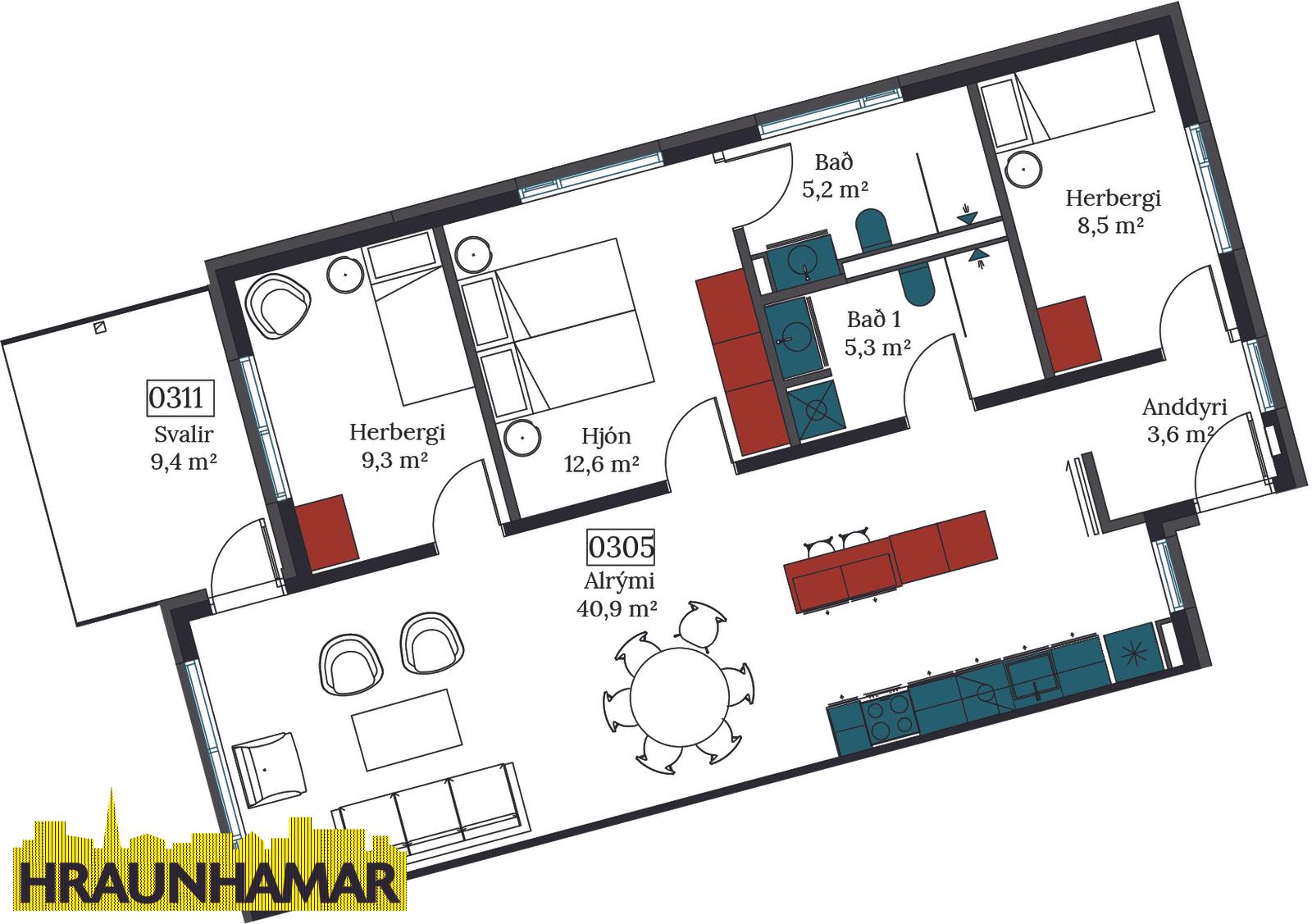 BÓKIÐ SKOÐUN - Einar s. 888-7979 Helgi s. 893-2233 Glódís s. 659-0510 Vala s. 791-7500 Hlynur s. 698-2603 Hraunhamar kynnir: Glæsilega fjögurra herbergja endaíbúð á 3. hæð með svölum í nýju vönduðu lyftuhúsi á frábærum stað í Hamraneshverfinu í Hafnarfirði, þar sem stutt er í alla helstu þjónustu. Íbúðirnar afhendast fullbúnar með gólfefnum. Ath: tvö baðherbergi !Íbúð 305 er fjögurra herbergja, skráð 108,9 fermetrar með geymslu. Auk þess fylgir stæði með í lokaðri bílageymslu. Afhending við kaupsamning.