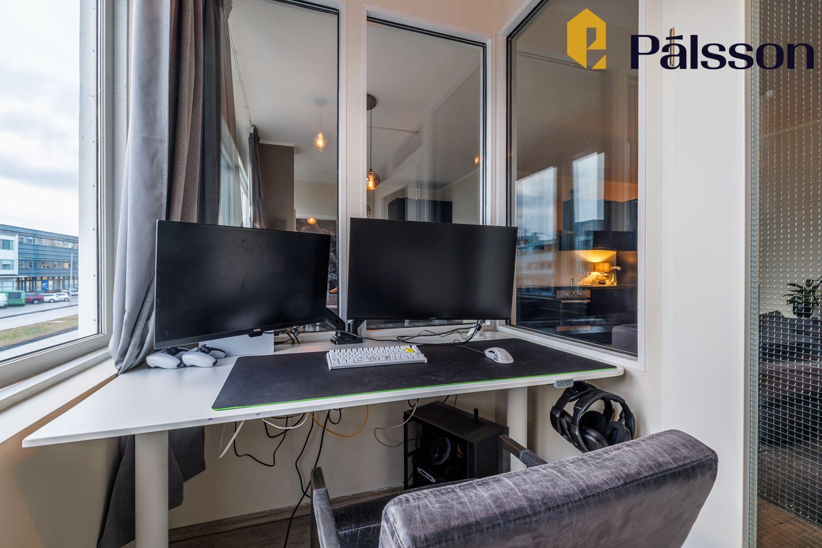 Svalir eru innbyggðar og nýtast í dag sem skrifstofa.