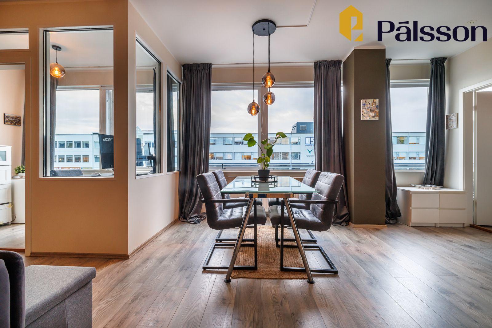 Hér er um að ræða bjarta og vel skipulagða íbúð í húsi sem hefur verið endurnýjað að mestu, bæði utan og innan. Endurbæturnar hafa m.a. verið unnar af Haraldi Ingvarssyni hjá Plúsarkitektum og Jóni Kristjánssyni byggingaverkfræðingi hjá VJK ehf. Húsið hefur fengið nýja veðurkápu og innbyggðar svalir í samráði við arkitekt Margréti Leifsdóttur. Sett hefur verið nýtt tvöfalt K-gler í alla glugga.Nánari upplýsingar veita:Evert Guðmundsson Lgf. í síma nr 8233022 eða evert@palssonfasteignasala.is