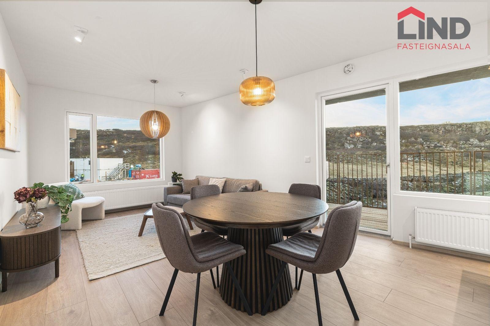 Íbúð 205: Er 93,8 fermetra 4ja herbergja íbúð á annarri hæð með góðum 7,6 fermetra svölum. Þar af er geymsla 13,6 fermetrar. Afhending er áætluð í mars/apríl 2026 en þó með fyrirvara um að öryggisúttekt sé komin á húsið.
