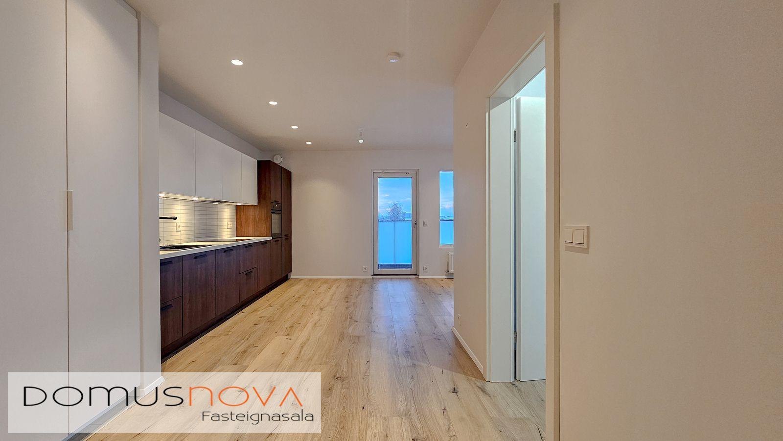 Íbúð 214 er skráð 74.0 fm., að meðtaldri geymslu. Sérinngangur er inn í eignina, svalir í suðvestur og bílastæði í bílakjallara. Innan eignar er anddyri, stofa eldhús, tvö herbergi, baðherbergi og sér skápur á gangi fyrir þvottavél og þurrkara.