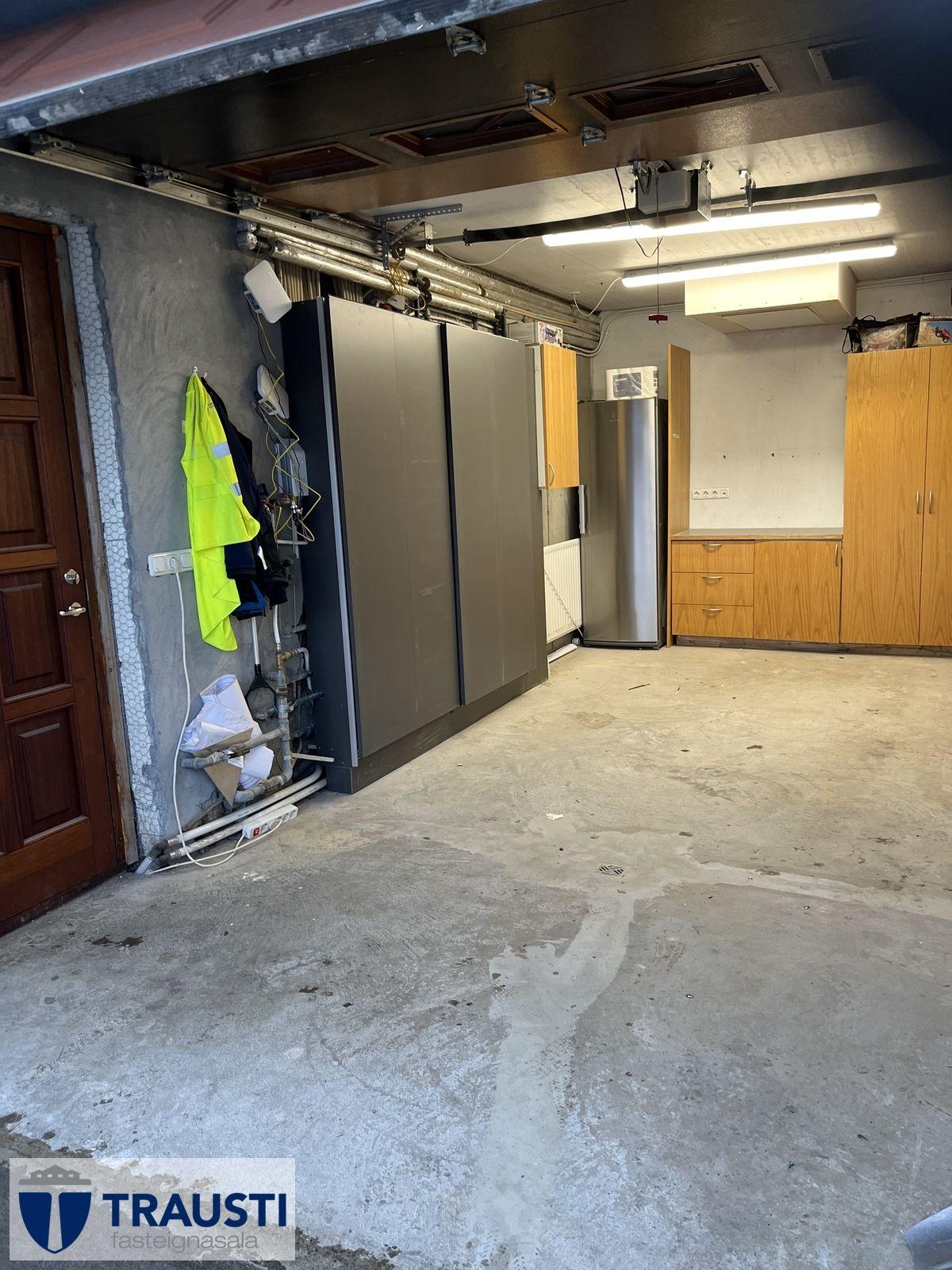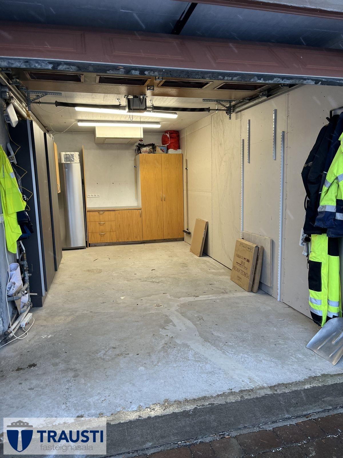 Bílskúr er mjög snyrtilegur með heitu og köldu vatni, hurð á hliðinni, bílskúrshurð með bílskúrshurðaropnara, lúga með stiga upp á geymsluloft, allar lagnir í snyrtilegum skáp með rennihurð, innrétting og steypt gólf. Bílaplan er hellulagt með snjóbræðslu.
