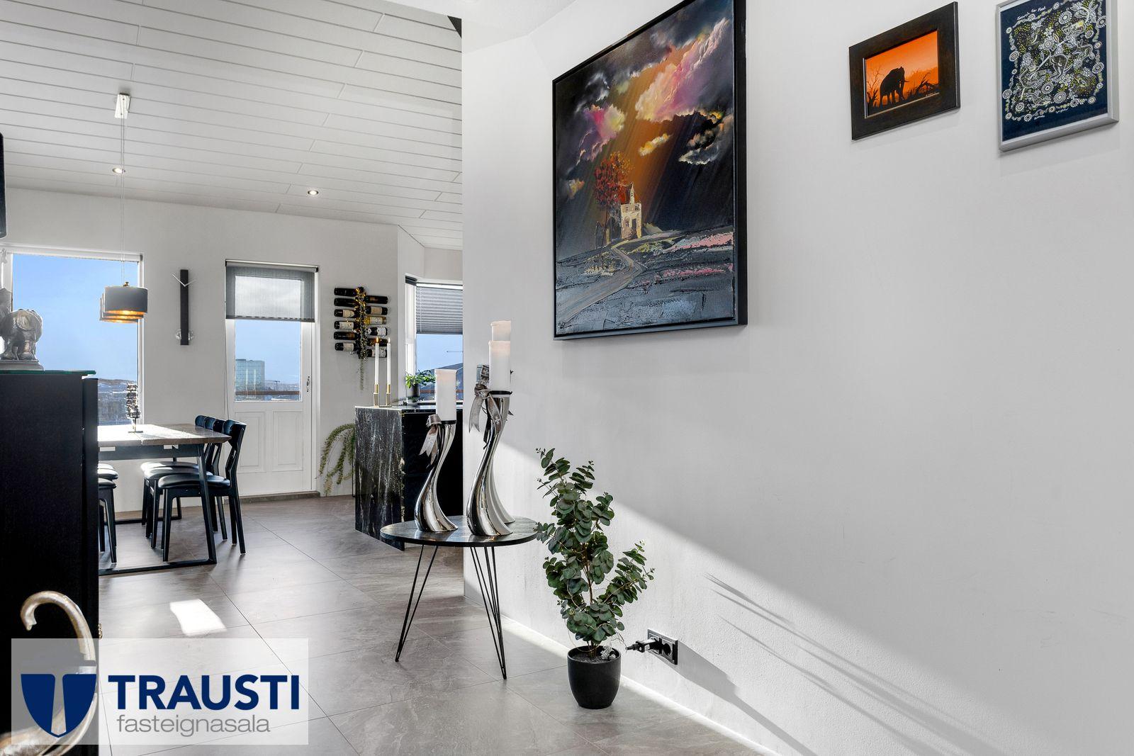 Nánar um eignina:Forstofa er opin með góðu skápaplássi og flísum á gólfi.