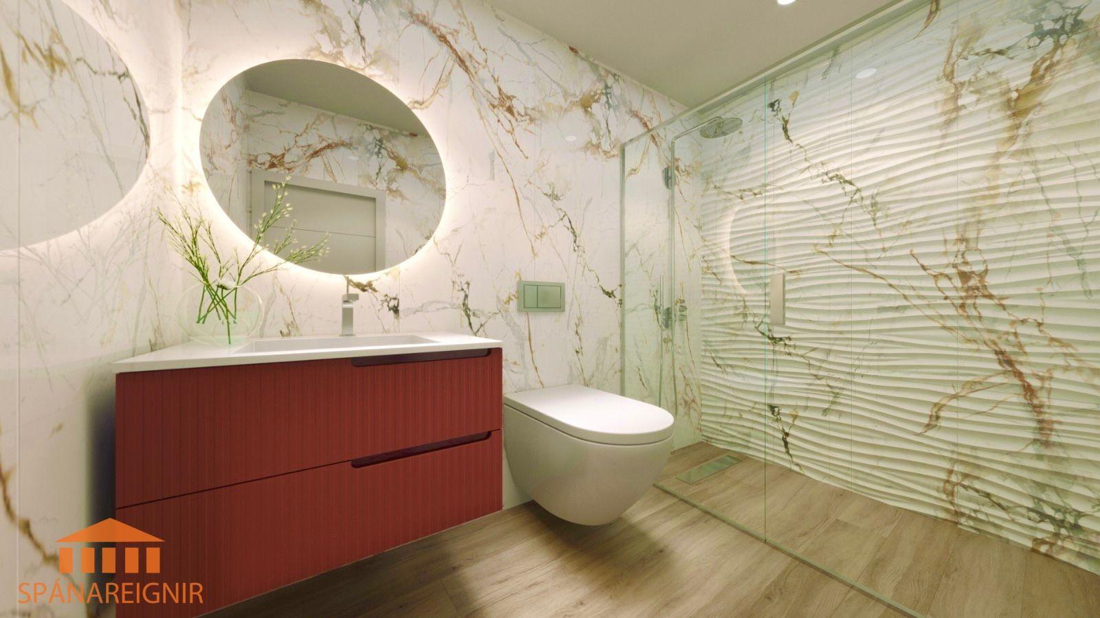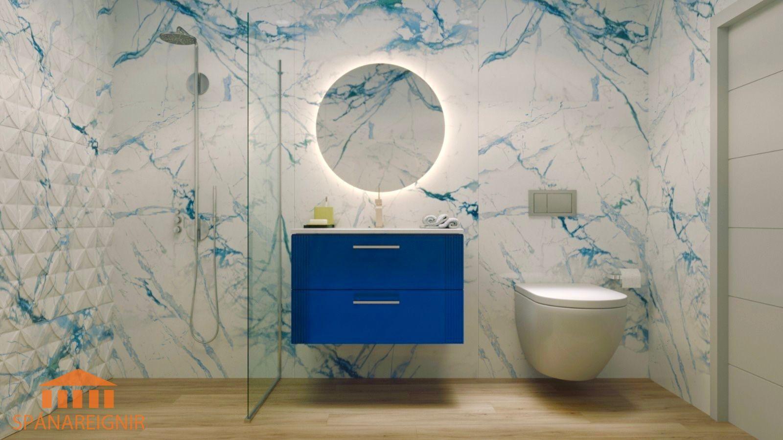 Þrjú svefnherbergi með fataskápum. 3 baðherbergi, þarf af tvö þeirra inn af svefnherbegjum.