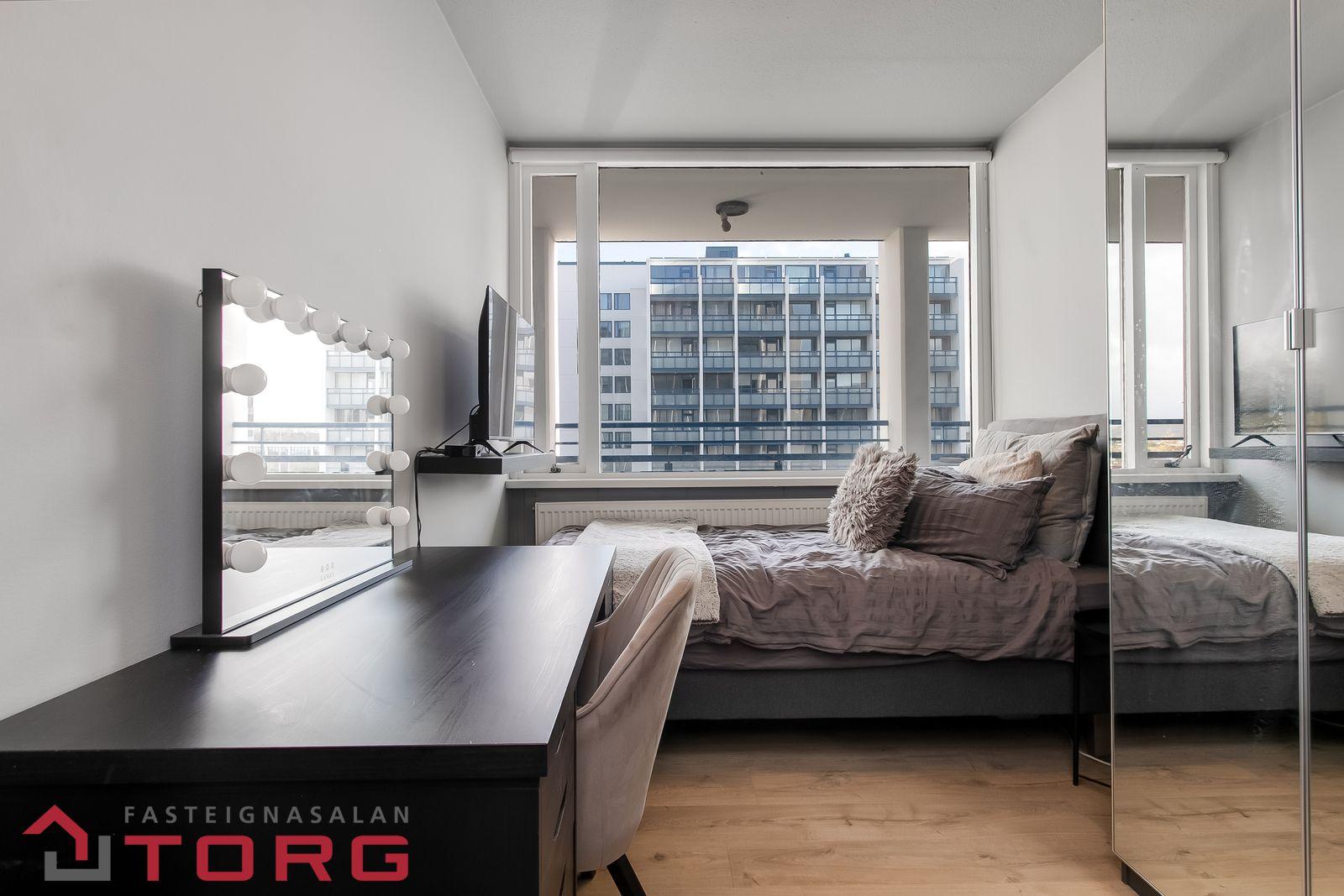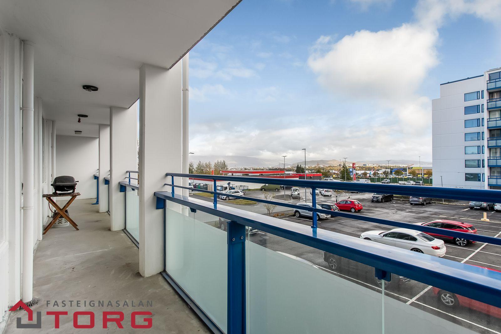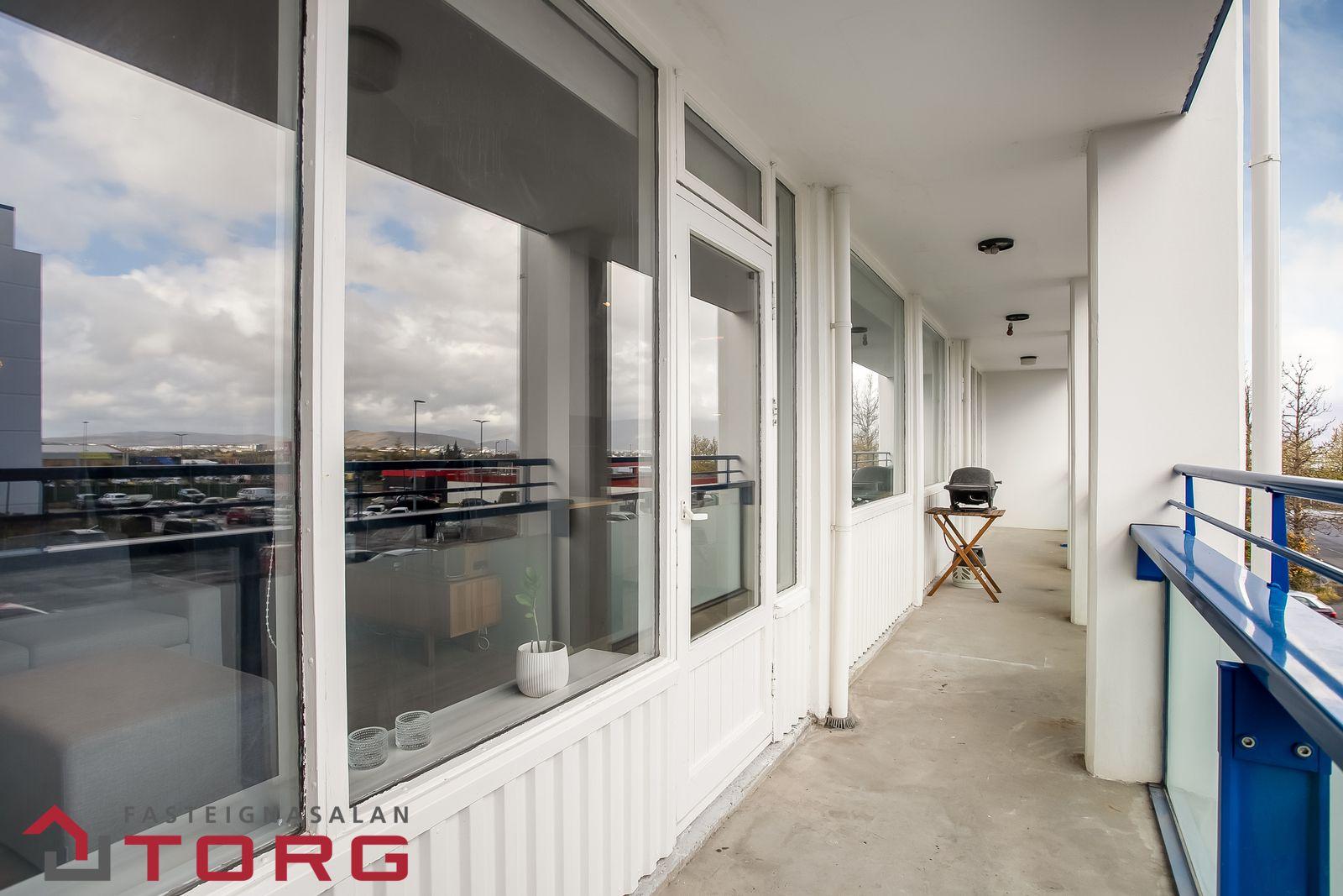 Svalir. Svalirnar liggja meðfram allri íbúðinni með útgengi frá bæði stofu og hjónaherbergi. Nýlegt svalahandrið. Möguegt að setja svalalokanir á svalirnar.