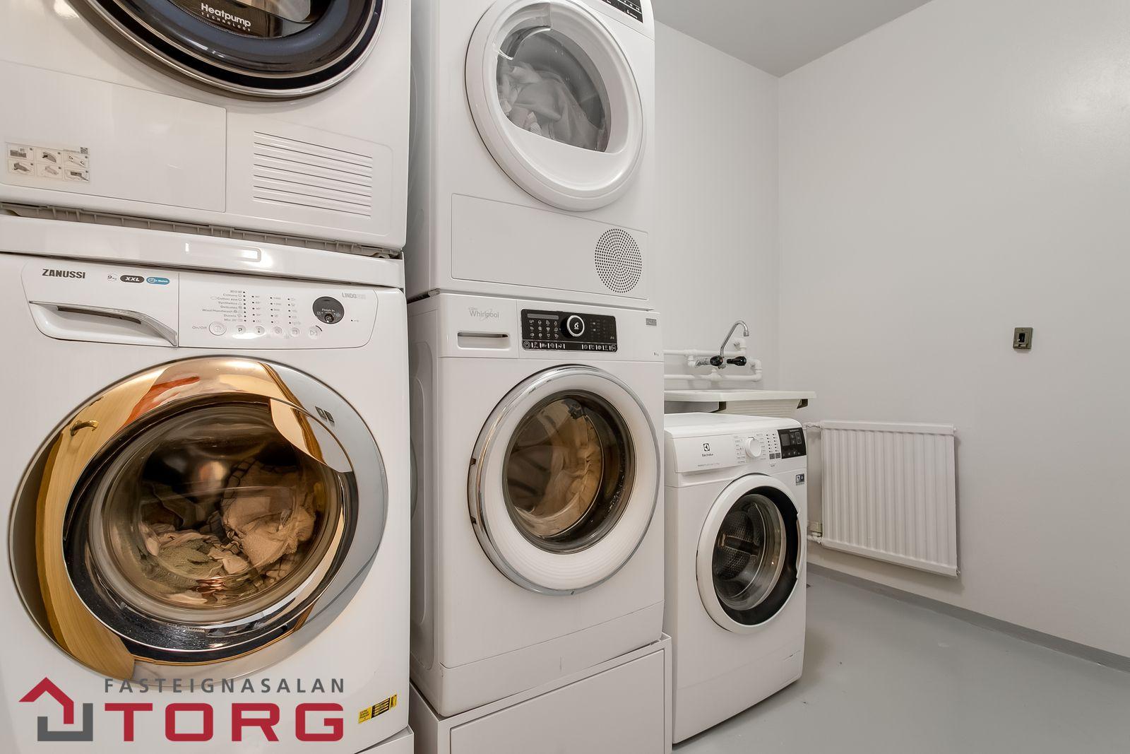 Þvottahús. Nýlega endurnýjað og einkar snyrtilegt þvottahús sem er sameiginlegt með þremur öðrum íbúðum á hæðinni.