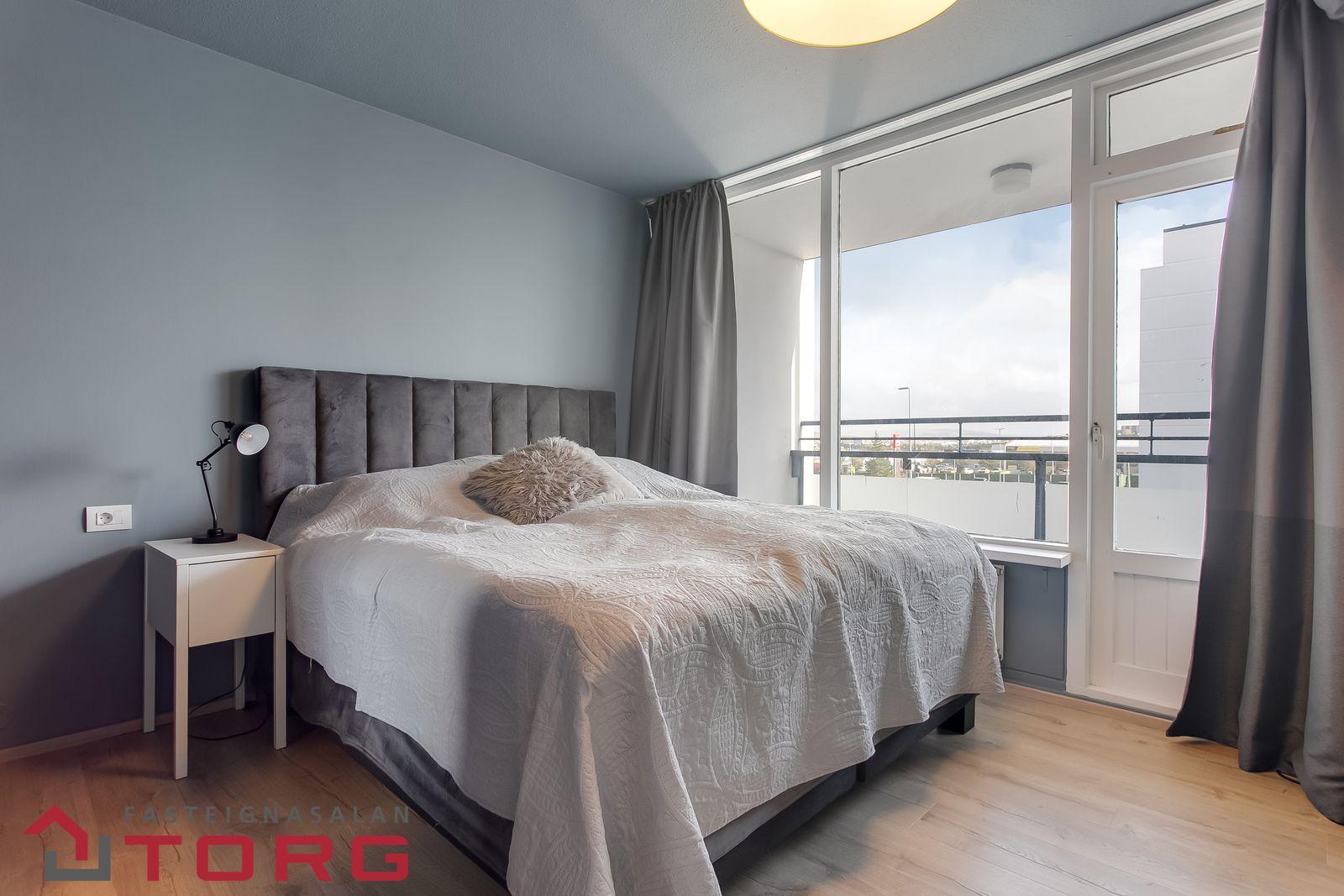 2 íbúð (nr.202) með stórum svölum og sérgeymslu í sameign. Gott fjölbýlishús með lyftu. Hol, gangur með fataskápum, tvö svefnherbergi með fataskápum, eldhús með nýlegri innréttingu, baðherbergi með walk in sturtu. Stofa og borðstofa, stórar svalir. Næg bílastæði. Vel rekið húsfélag. Þak hússins var endurnýjað fyrir nokkrum árum síðan. Eigandi hefur skipt út ofnum, parketi, endurnýjað eldhús og baðherbergi, íbúð öll nýlega máluð, rafmagnstenglum skipt út ofl. Um er að ræða afar vel viðhaldna íbúð á annarri hæð.