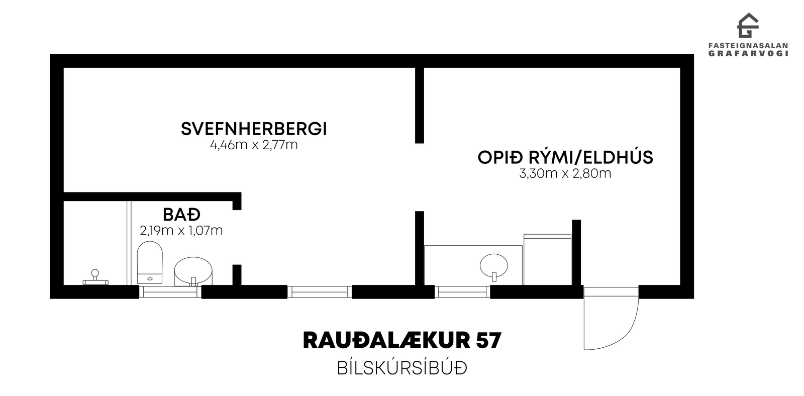 Bílskúr er skráður 26,7 fm2 og er innréttaður sem stúdíóíbúð. Baðherbergi er flísalagt í hólf og gólf með sturtu, salerni og handlaug, lítil eldhúsinnrétting með vaski, bakarofni og plássi fyrir ísskáp. Innfelld lýsing í lofti og parket á gólfi. Bílskúrinn var endurgerður og innréttaður sem íbúð fyrir 4árum.