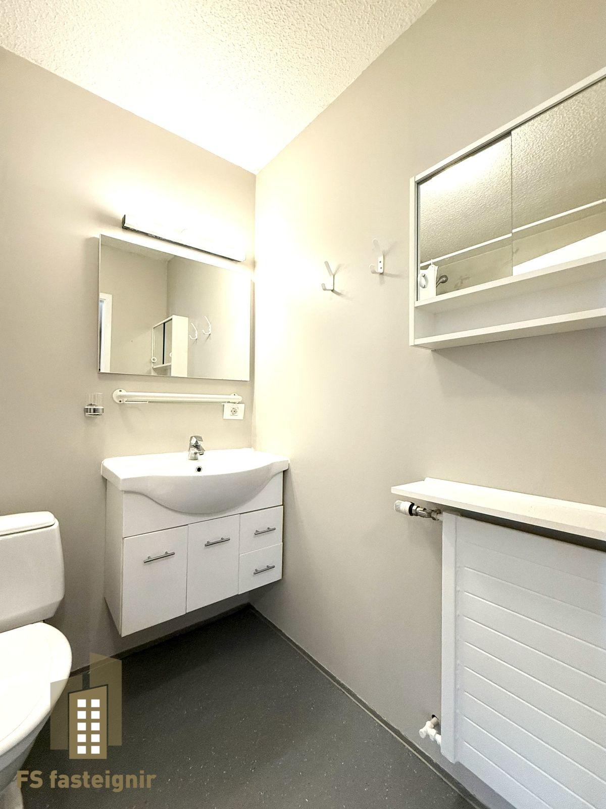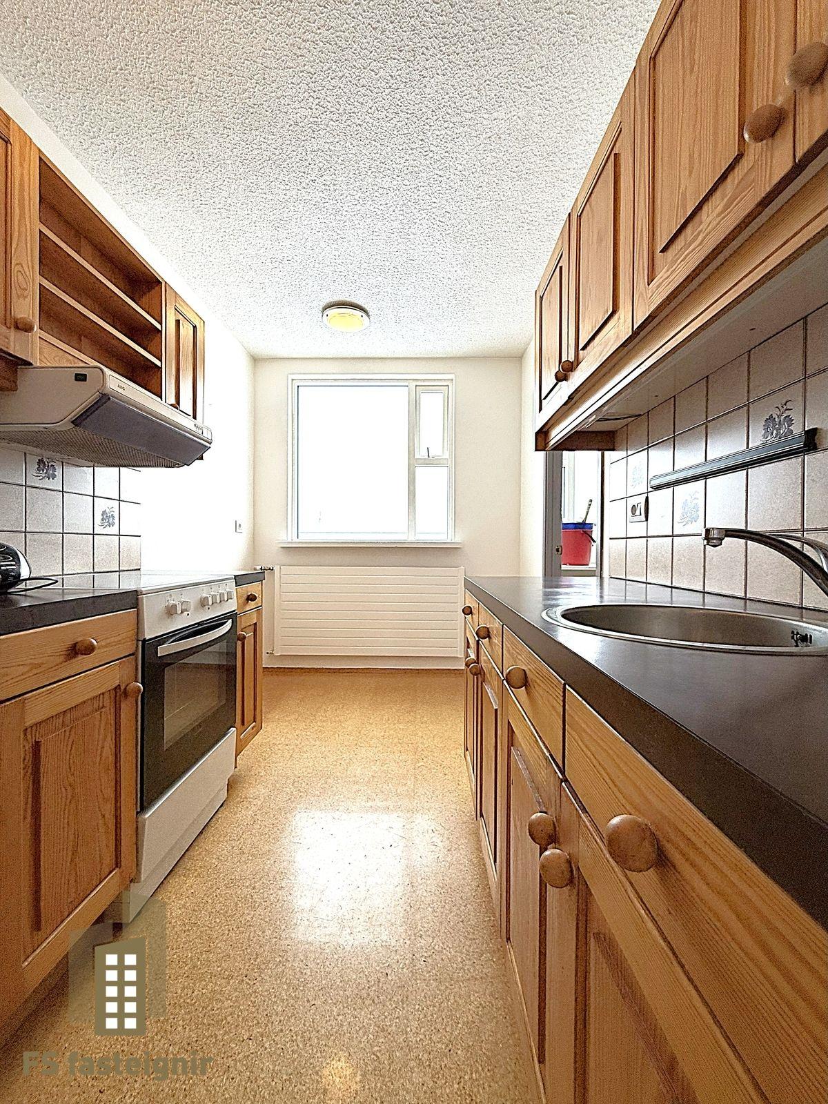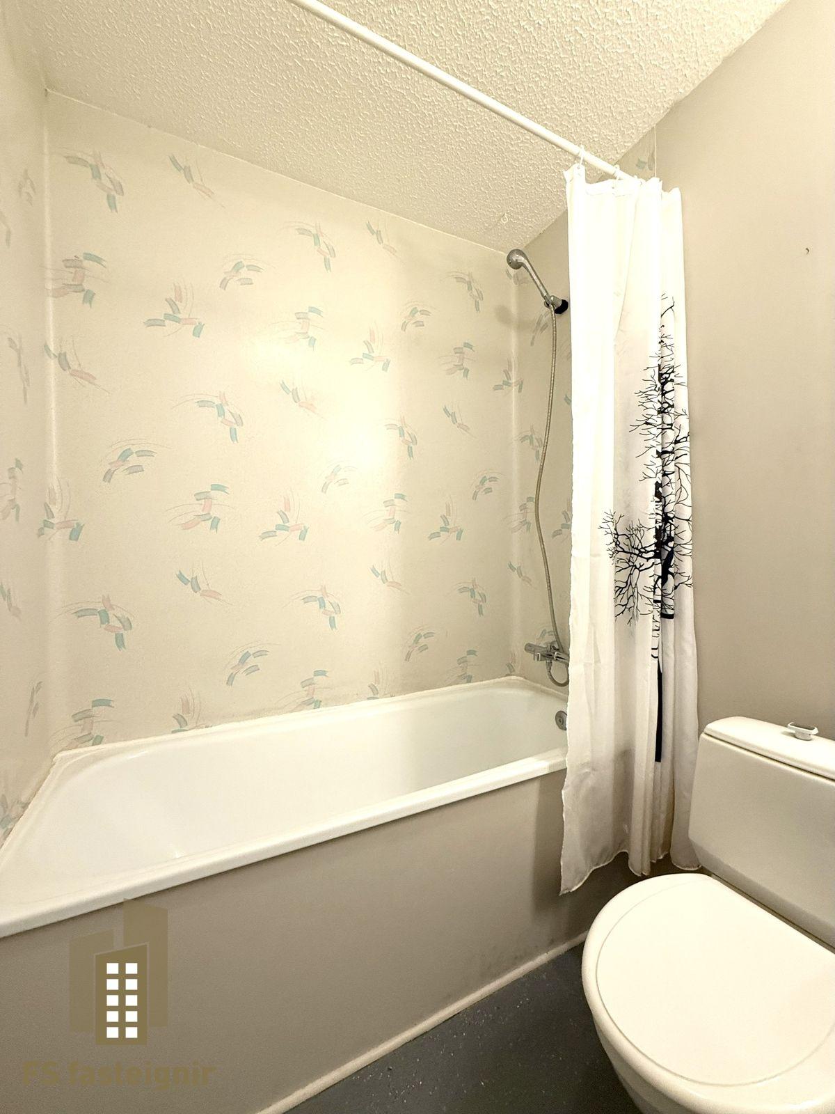 Nánari lýsing: Forstofa parket og fataskápur. Stofa/borðstofa mjög rúmgóð með parket á gólfi, úr stofu er hurð út á vestursvalir. Svefnherbergi með fataskáp og parket á gólfi. Baðherbergi er með dúk á gólfi og veggjum innrétting við vask. Baðkar með sturtuaðstöðu.