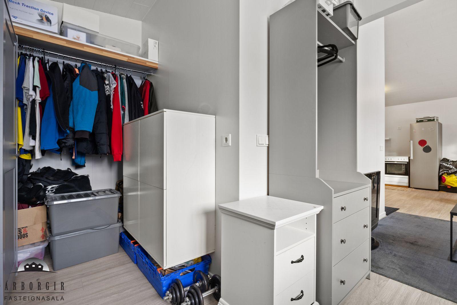 Þvottahúsið er með máluðu gólfi, en þar er sérinngangur.