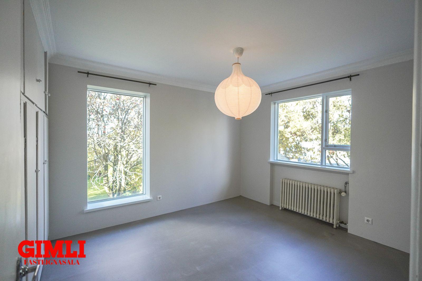 Stofan er rúmgóð og björt með fallegum gluggum.