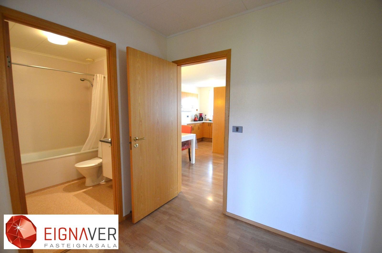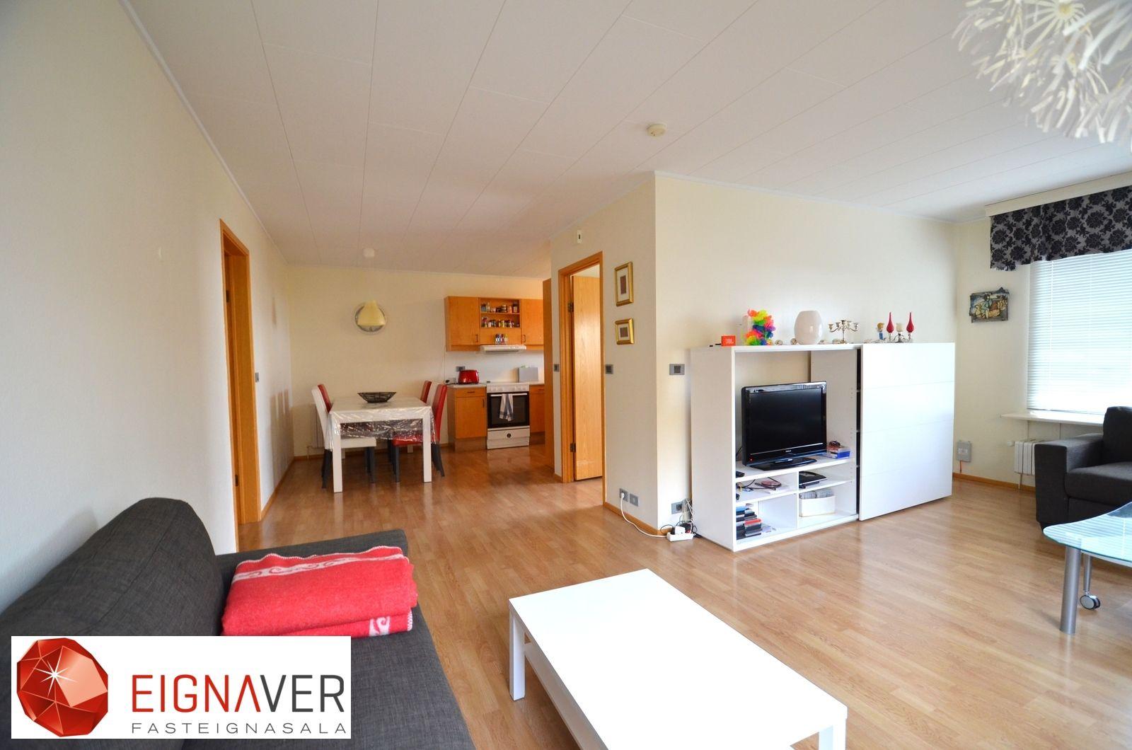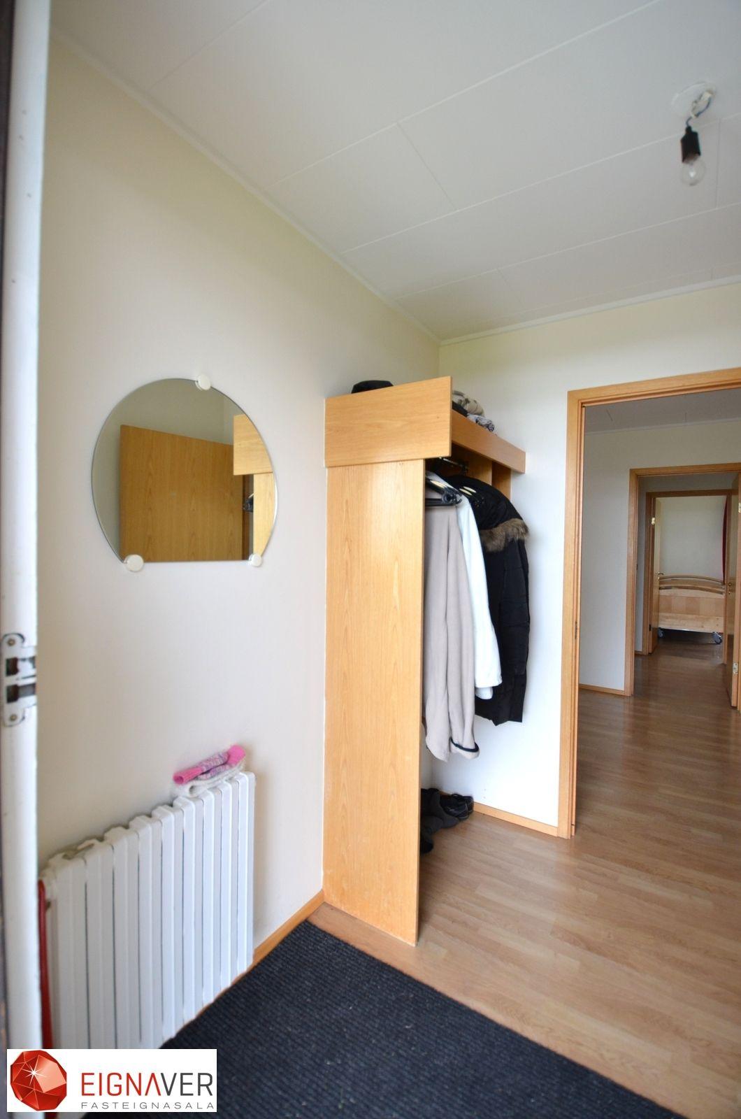 Nánari lýsing: Forstofa með parketi á gólfi, fatahengi. Stofa með parketi á gólfi. Eldhús góð eldri innrétting, gott vinnupláss, borðkrókur, parket á gólfi. Hol með parketi. Úr holi er gengið inn í herbergi, baðherbergi og geymslu. Svefnherbergi eru tvö, parket á gólfi , góðir skápar. Bæði herbergi eru rúmgóð. Baðherbergi er með dúk á gólfi og hluta veggja, baðkar með sturtutækjum, hvít innrétting. Þvottahús/Geymsla er með málað gólf, útgangur til norðurs.