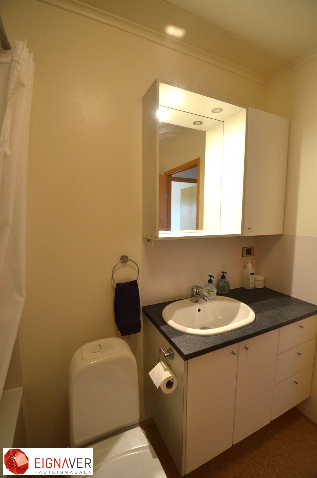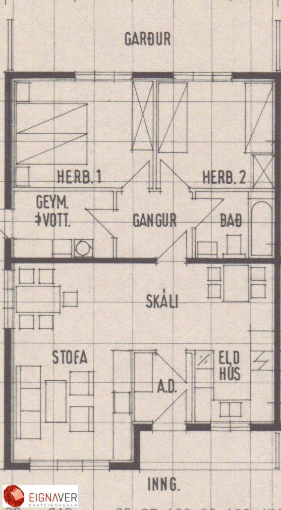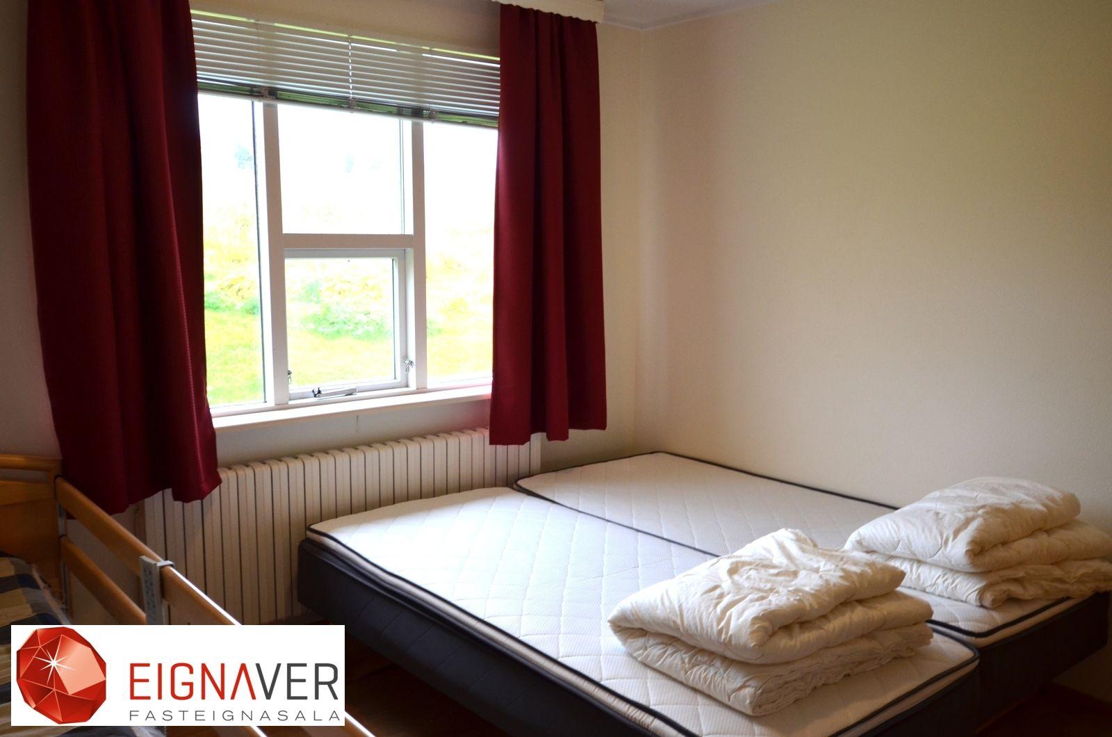 Nánari lýsing: Forstofa með parketi á gólfi, fatahengi. Stofa með parketi á gólfi. Eldhús góð eldri innrétting, gott vinnupláss, borðkrókur, parket á gólfi. Hol með parketi. Úr holi er gengið inn í herbergi, baðherbergi og geymslu. Svefnherbergi eru tvö, parket á gólfi , góðir skápar. Bæði herbergi eru rúmgóð. Baðherbergi er með dúk á gólfi og hluta veggja, baðkar með sturtutækjum, hvít innrétting. Þvottahús/Geymsla er með málað gólf, útgangur til norðurs.