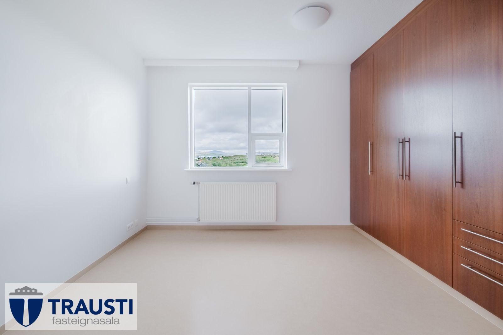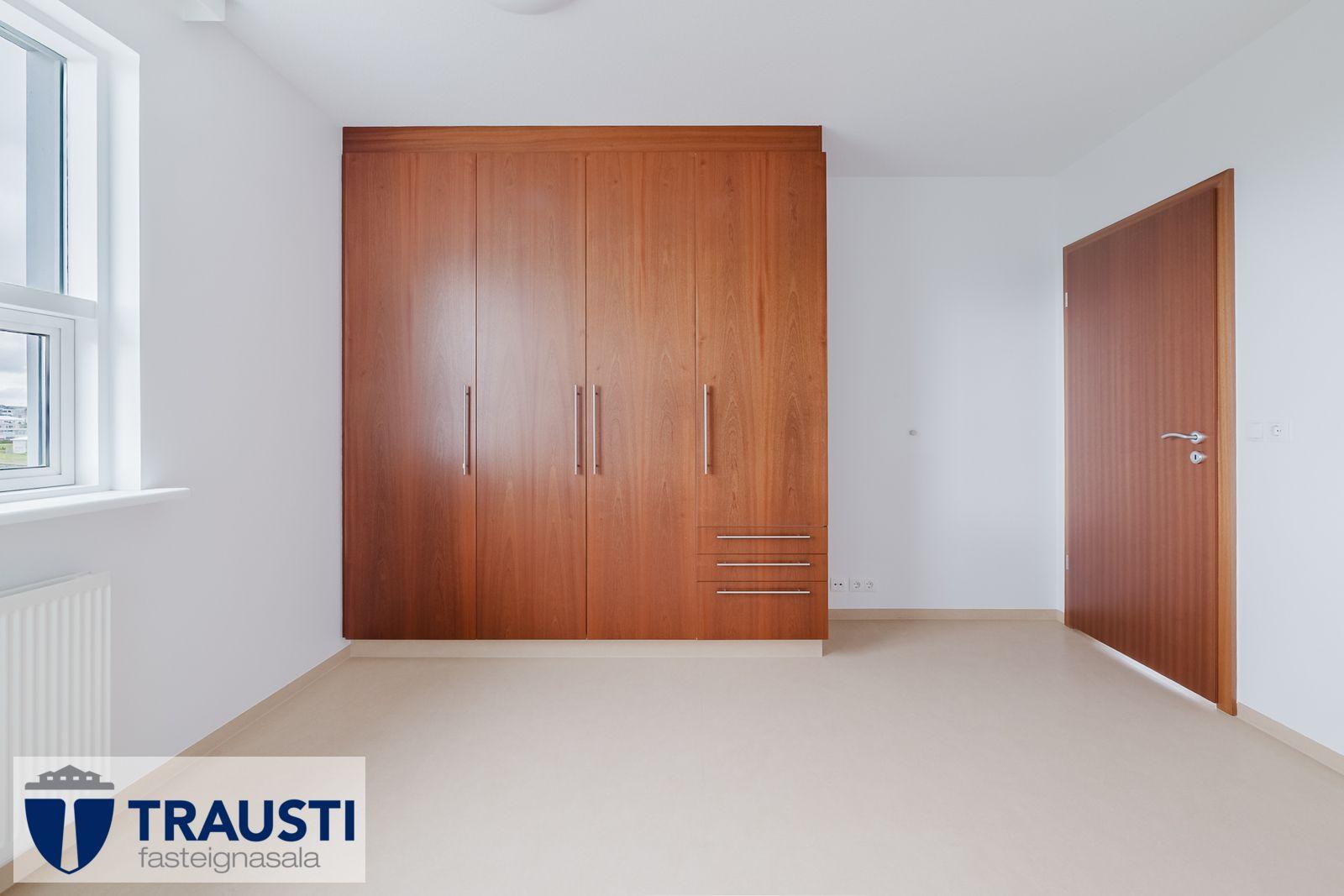 Hjónaherbergi er rúmgott með góðu skápaplássi.