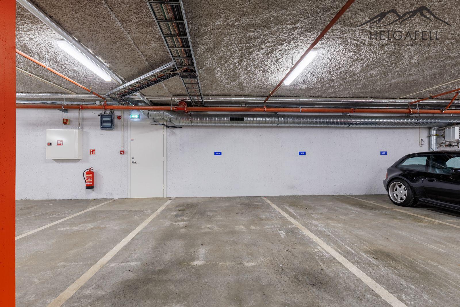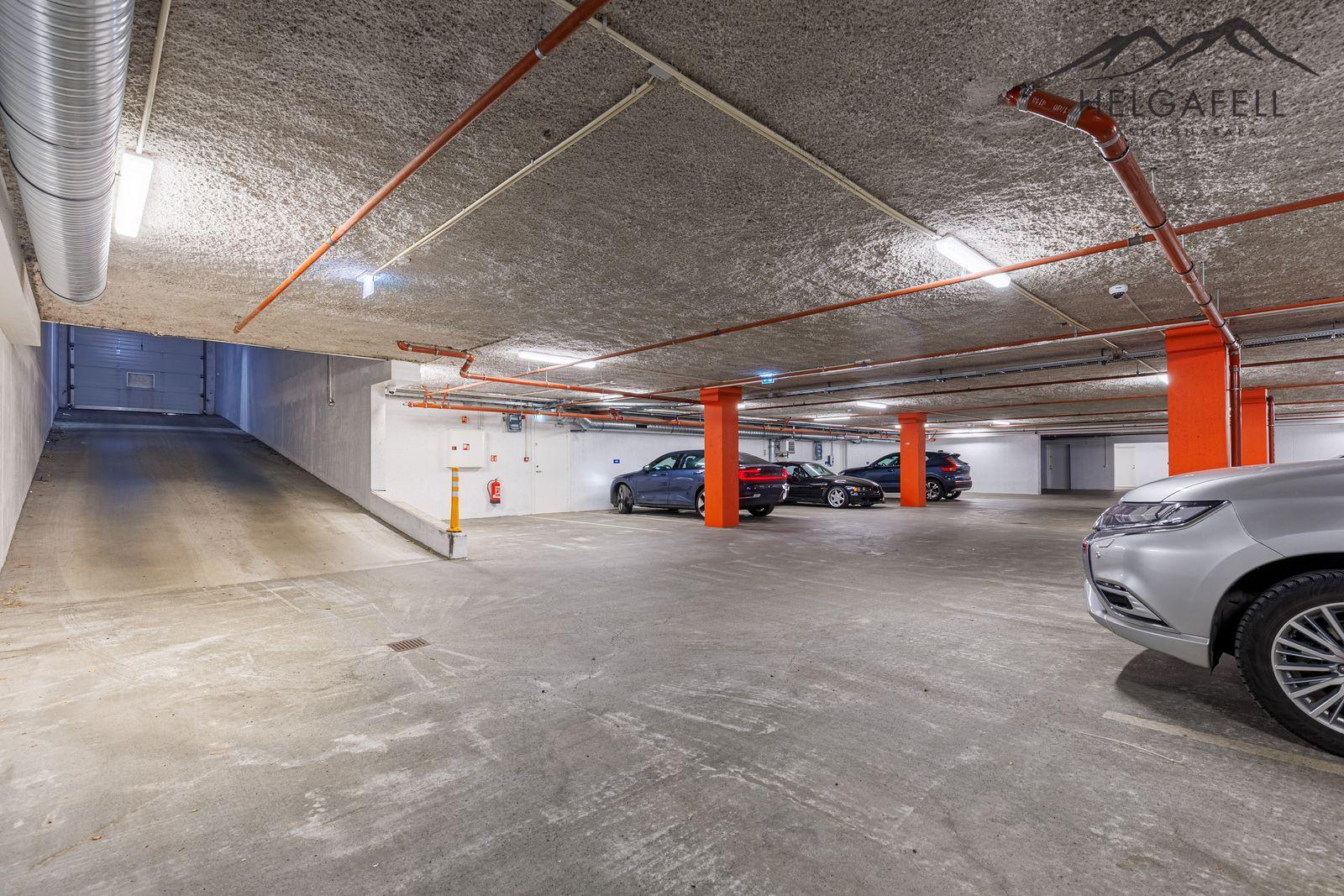 Bílageymsla: Vel staðsett stæði í lokaðri bílageymslu, ekki skráð í fermetratölu eignar.