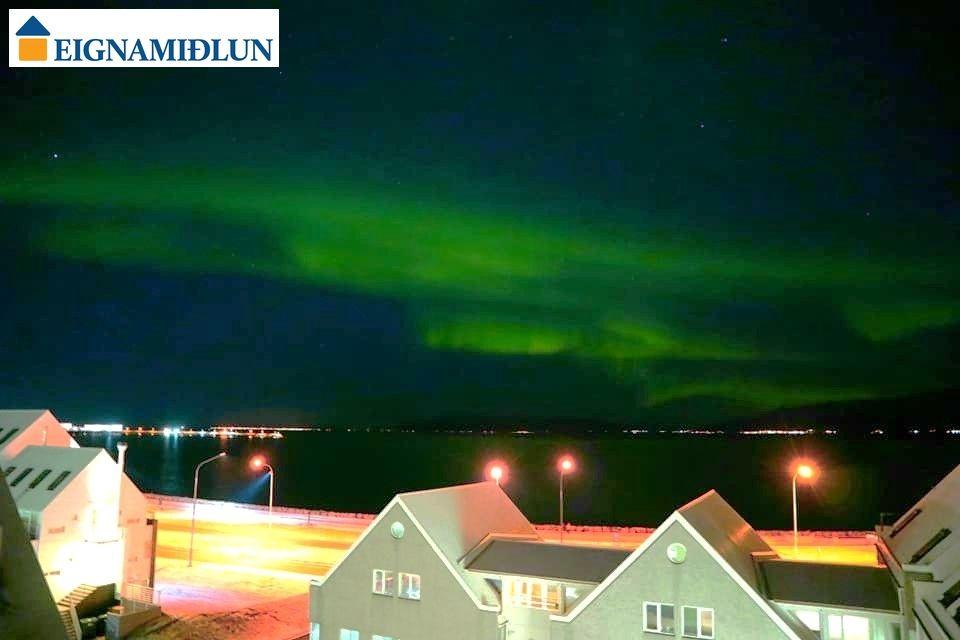 Nánari lýsing eignarinnar:1 hæð: Komið er inn í flísalagða forstofu með skáp og fatahengi. Á vinstri hönd úr forstofu er geymsla og þvottahús. Úr forstofu er gengið í parketlagt hol. Á vinstri hönd er gestabaðherbergi með nýlegum flísum á gólfi og ljósum flísum á veggjum. Á vinstri hönd úr holi er gengið inn í herbergi/stofu sem er opið inn í alrými. Á hægri hönd er samliggjandi borðstofa og eldhús. Eldhús með nýlegri HTH innréttingu með stórum innbyggðum ísskáp og stórum innbyggðum frystiskáp. Þá er einnig ný XL uppþvottavél í innréttingu. Útgengt er á yfirbyggðar svalir sem snúa til vesturs úr borðstofu. Fallegt útsýni úr eldhúsgluggum og af svölum.
