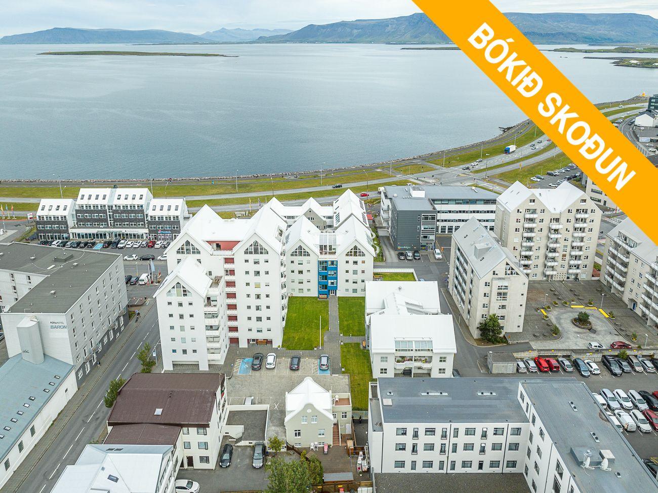 Skúlagata 40A, 159.4 fm 3 herbergja íbúð merkt 05-02. Útsýnisíbúð á tveimur hæðum í fallegu og frábærlega vel staðsettu lyftuhúsi í "Skuggahverfinu" með bílskúr. Einstaklega glæsilegt sjávarútsýni og fjallasýn m.a. Esjan, Akrafjall og fl. Tvennar svalir. Íbúðin er háð þeim kvöðum að kaupandi þarf að vera 60 ára eða eldri. Nýleg eldhúsinnrétting frá HTH með innbyggðum stórum ísskáp og frystiskáp. Þá var þak endurnýjað 2023 og settir nýjir þakgluggar í sólskála og hjónaherbergi. Virkilega falleg og skemmileg íbúð á efstu hæð í þessu vinsæla húsi. Mögulegt að leigja eða kaupa auka stæði í bílastæðahúsi. Næg bílastæði á lóð fyrir gesti.