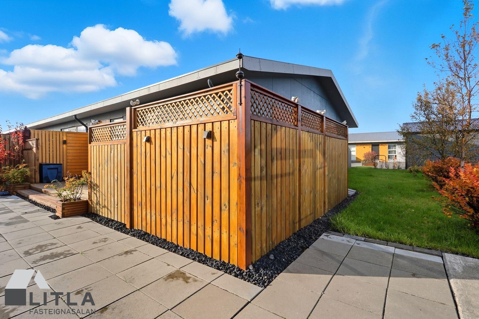 Litla Fasteignasalan s: 482-9900 kynnir - Bjart og vel skipulagt 3 herbergja endaraðhús með garðhýsi og vinnuskúr í garðinum