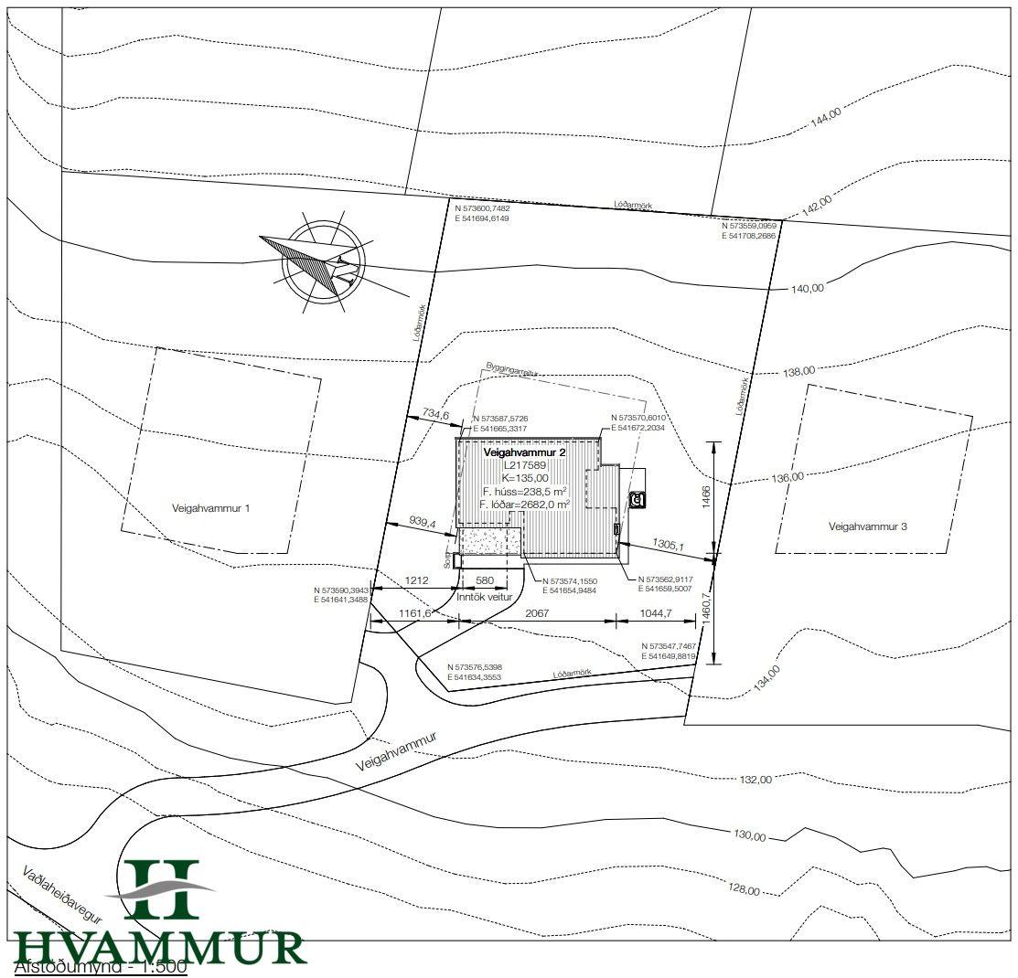 Veigahvammur 2 Nýbygging – Glæsilegt 4ra herbergja einbýlishús með bílskúr og bílskýli í byggingu á útsýnislóð í Vaðlaheiðinni – stærð 238,5 m², þar af telur bílskúr og geymsla 69,3 m²