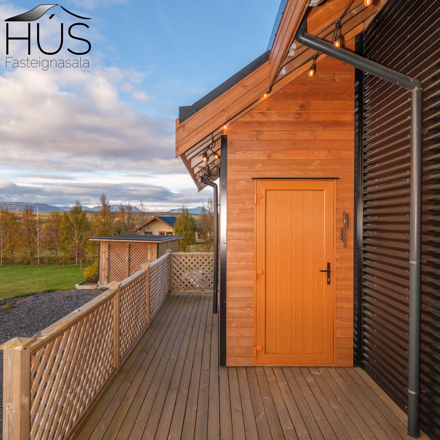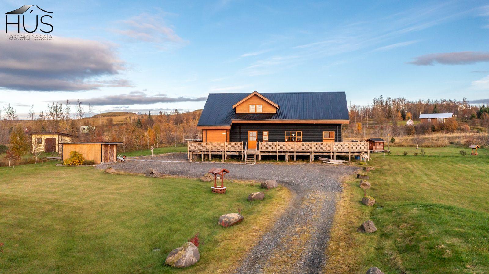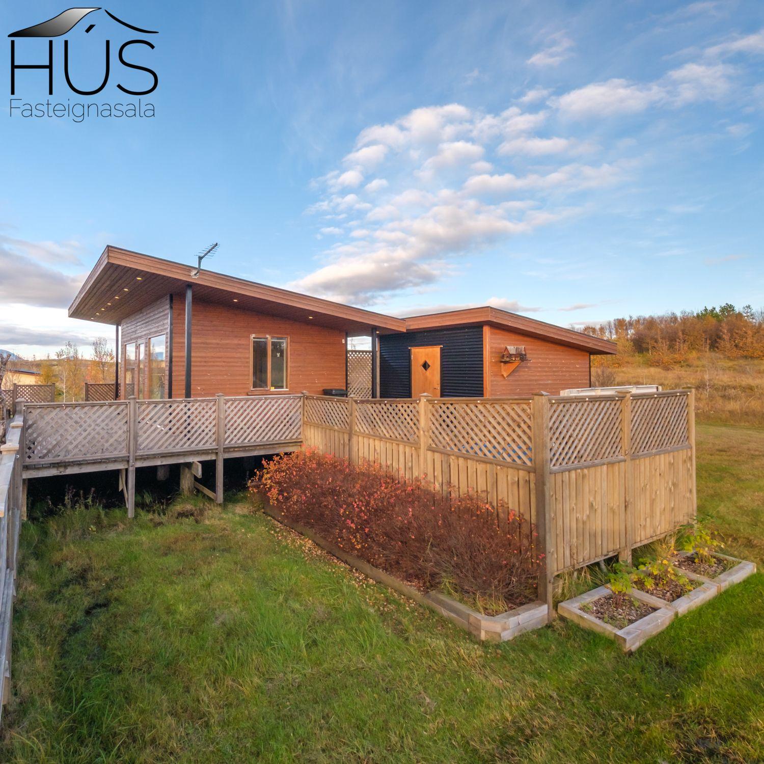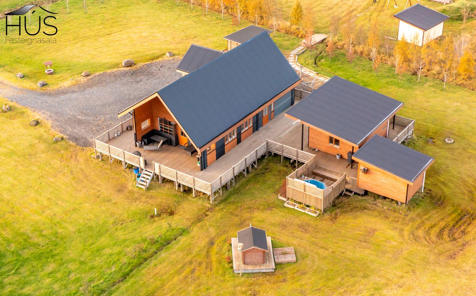 Halldóra Kristín Ágústsdóttir löggiltur fasteignasali sími 8611105- dora@husfasteign.is og Hús fasteignasala kynna í almennri sölu: Glæsilegt bjart og vel skipulagt sumarhús með 4 svefnherbergjum við Reykholt í Biskupstungum. Um er að ræða 122 m2 sumarhús byggt árið 2018, ásamt 30 m2 gesta húsi byggðu árið 2016 og 15 m2 útigeymslu. Húsið er klætt með álklæðningu, mjög rúmgóður timburpallur meðfram öllu húsinu með heitum potti. Einstakt umhverfi. Fallegt útsýni. Frábær staðsetning, 5 mínútur að keyra í Reykholt, stutt á Flúðir, Gullfoss og Geysi. Lóðin er eignalóð og er 5267 m2. Næg bílastæði og hleðslustöð fyrir rafmagnsbíla.