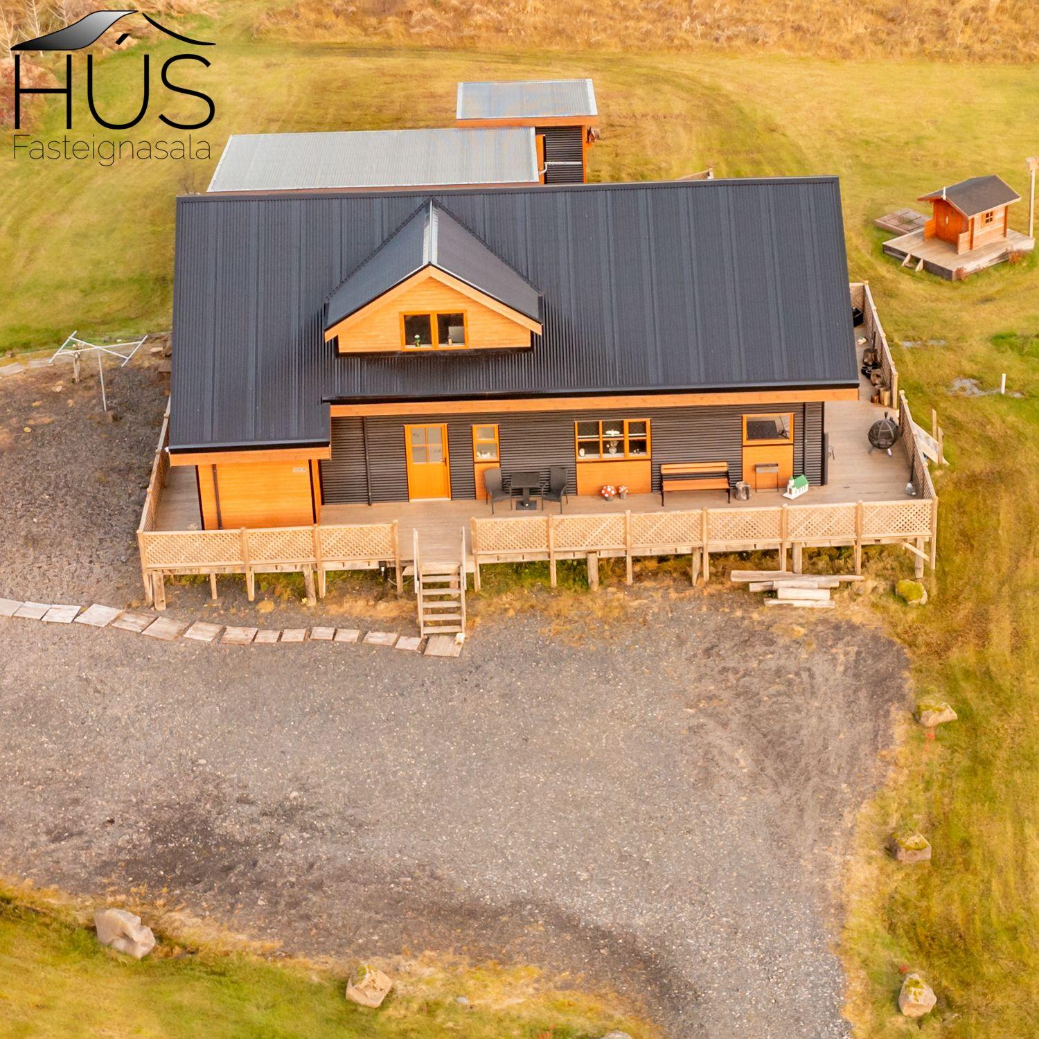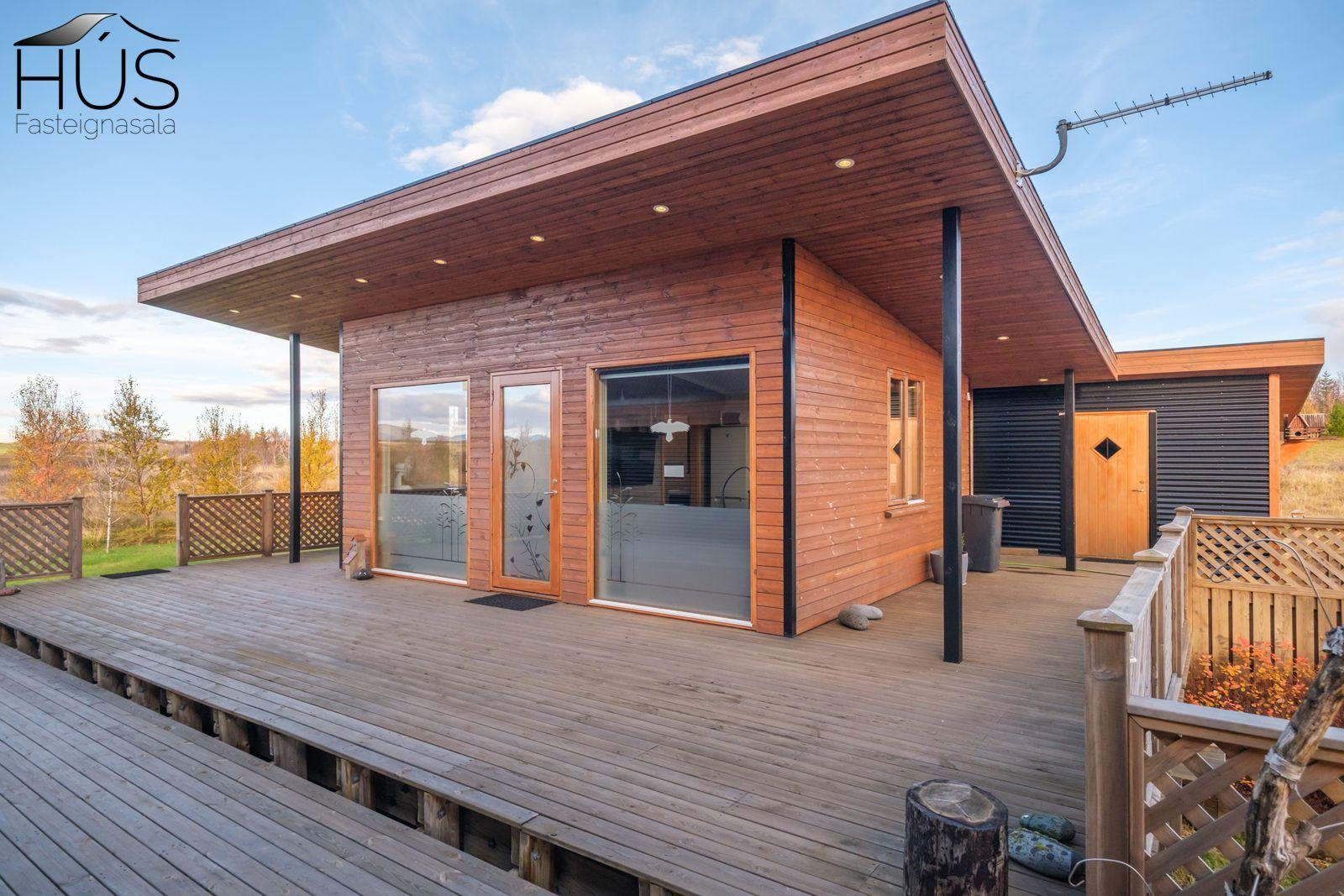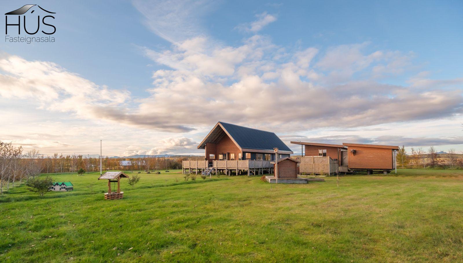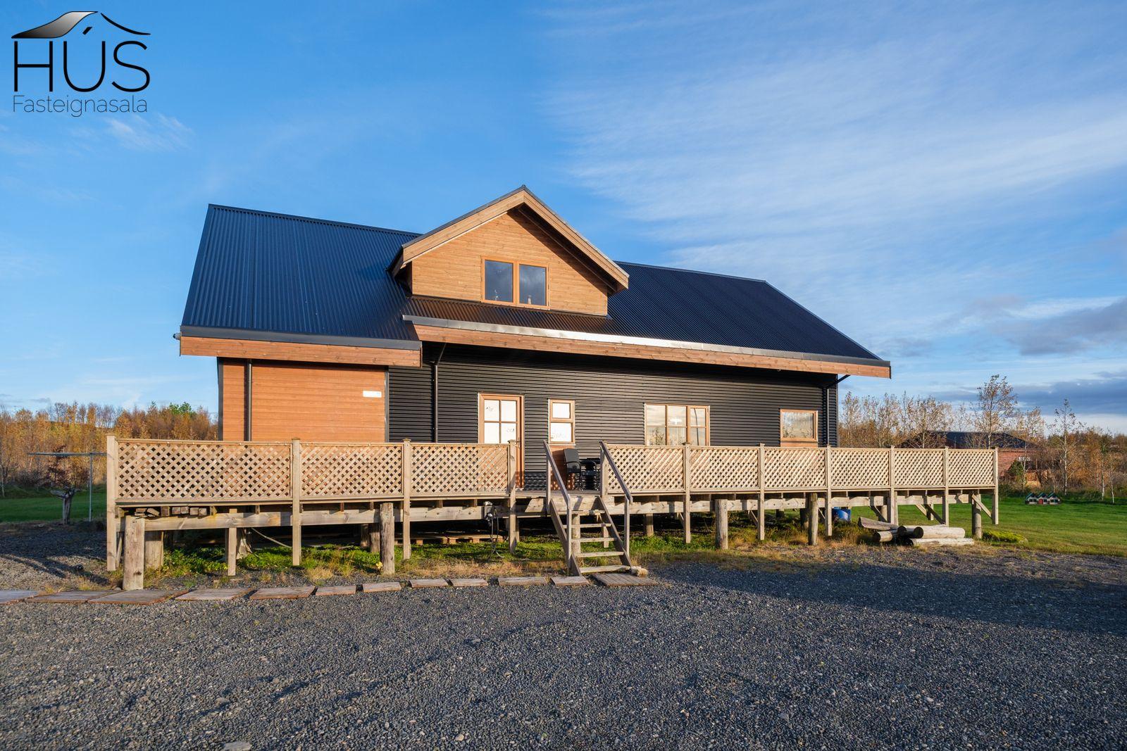 Halldóra Kristín Ágústsdóttir löggiltur fasteignasali sími 8611105- dora@husfasteign.is og Hús fasteignasala kynna í almennri sölu: Glæsilegt bjart og vel skipulagt sumarhús með 4 svefnherbergjum við Reykholt í Biskupstungum. Um er að ræða 122 m2 sumarhús byggt árið 2018, ásamt 30 m2 gesta húsi byggðu árið 2016 og 15 m2 útigeymslu. Húsið er klætt með álklæðningu, mjög rúmgóður timburpallur meðfram öllu húsinu með heitum potti. Einstakt umhverfi. Fallegt útsýni. Frábær staðsetning, 5 mínútur að keyra í Reykholt, stutt á Flúðir, Gullfoss og Geysi. Lóðin er eignalóð og er 5267 m2. Næg bílastæði og hleðslustöð fyrir rafmagnsbíla.