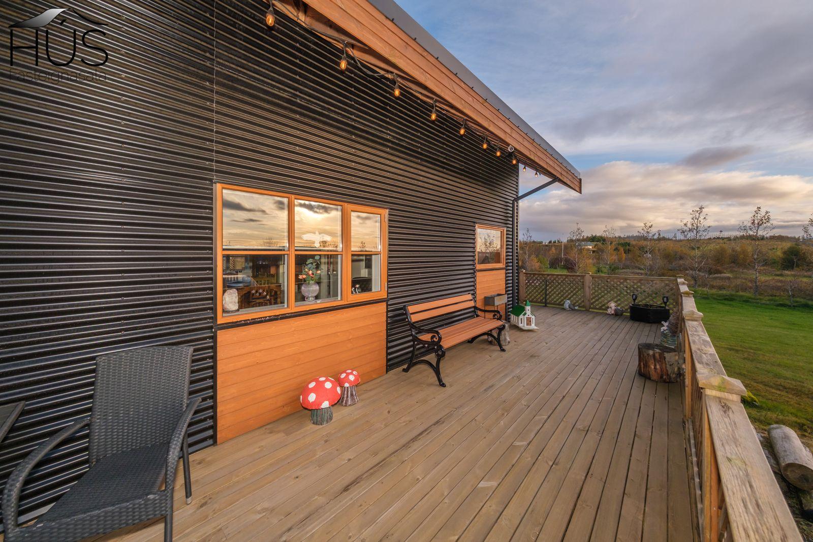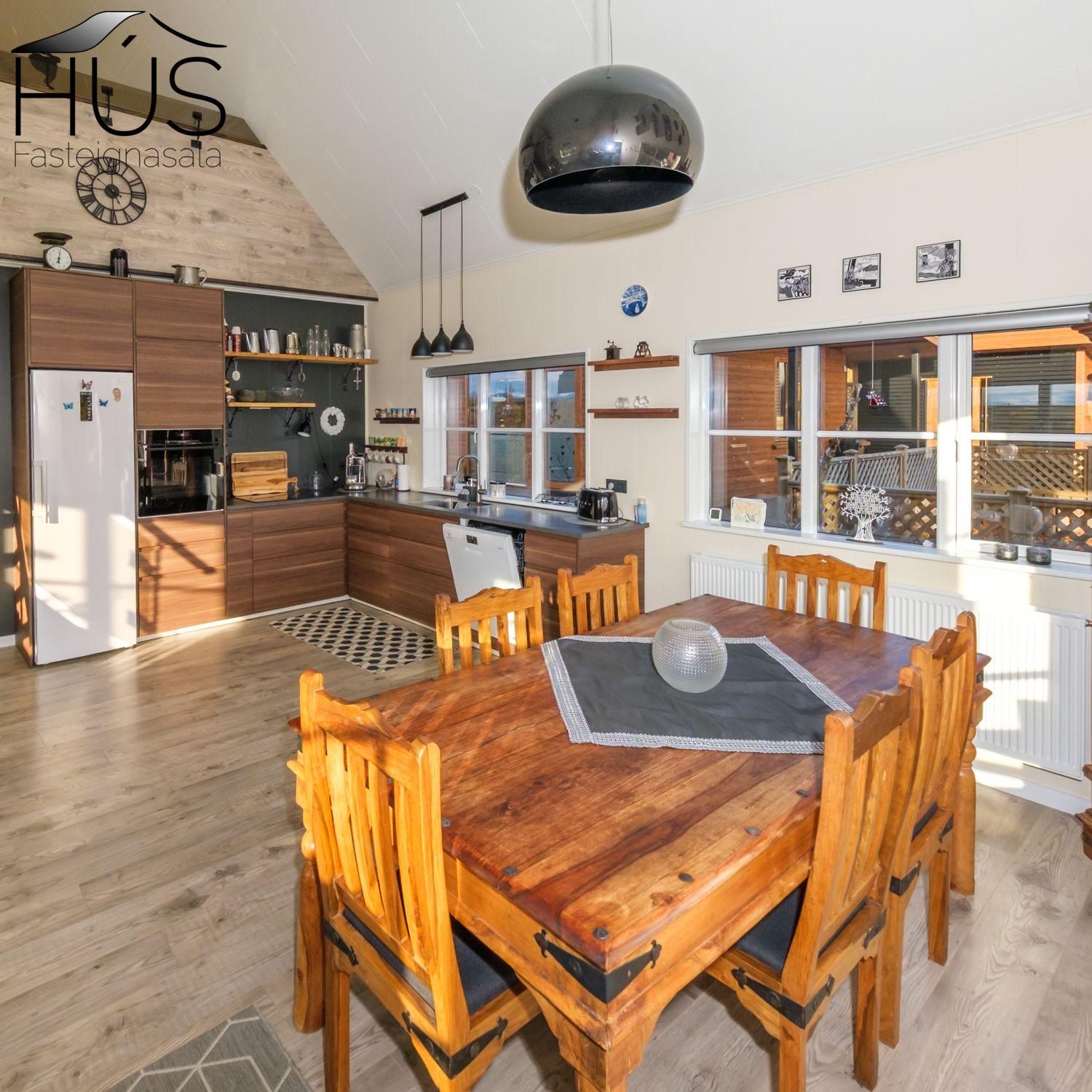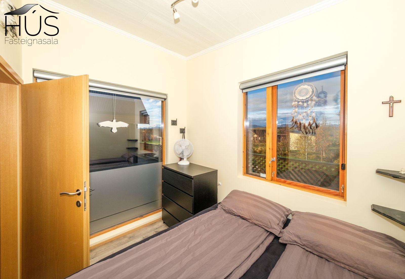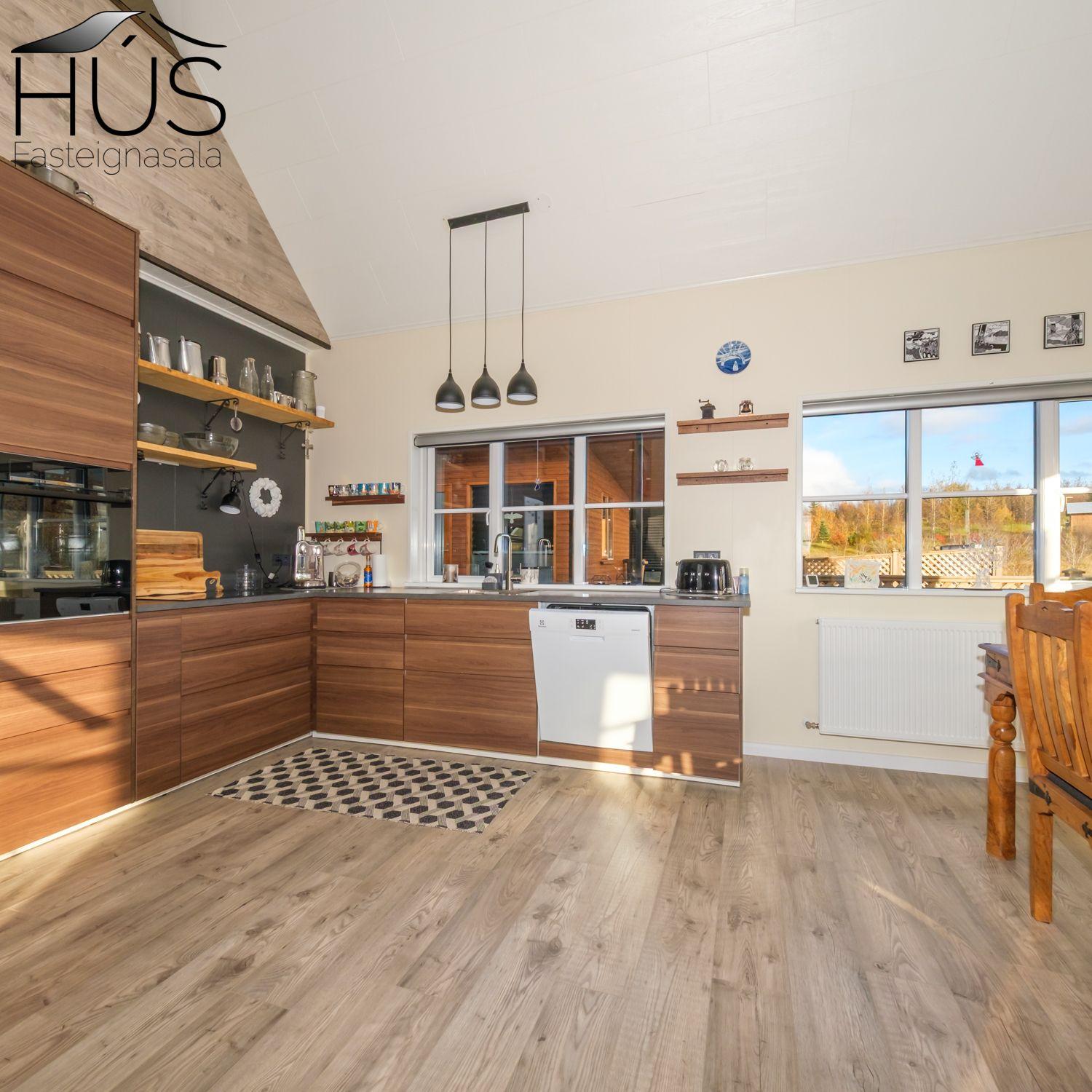 Halldóra Kristín Ágústsdóttir löggiltur fasteignasali sími 8611105- dora@husfasteign.is og Hús fasteignasala kynna í almennri sölu: Glæsilegt bjart og vel skipulagt sumarhús með 4 svefnherbergjum við Reykholt í Biskupstungum. Um er að ræða 122 m2 sumarhús byggt árið 2018, ásamt 30 m2 gesta húsi byggðu árið 2016 og 15 m2 útigeymslu. Húsið er klætt með álklæðningu, mjög rúmgóður timburpallur meðfram öllu húsinu með heitum potti. Einstakt umhverfi. Fallegt útsýni. Frábær staðsetning, 5 mínútur að keyra í Reykholt, stutt á Flúðir, Gullfoss og Geysi. Lóðin er eignalóð og er 5267 m2. Næg bílastæði og hleðslustöð fyrir rafmagnsbíla.