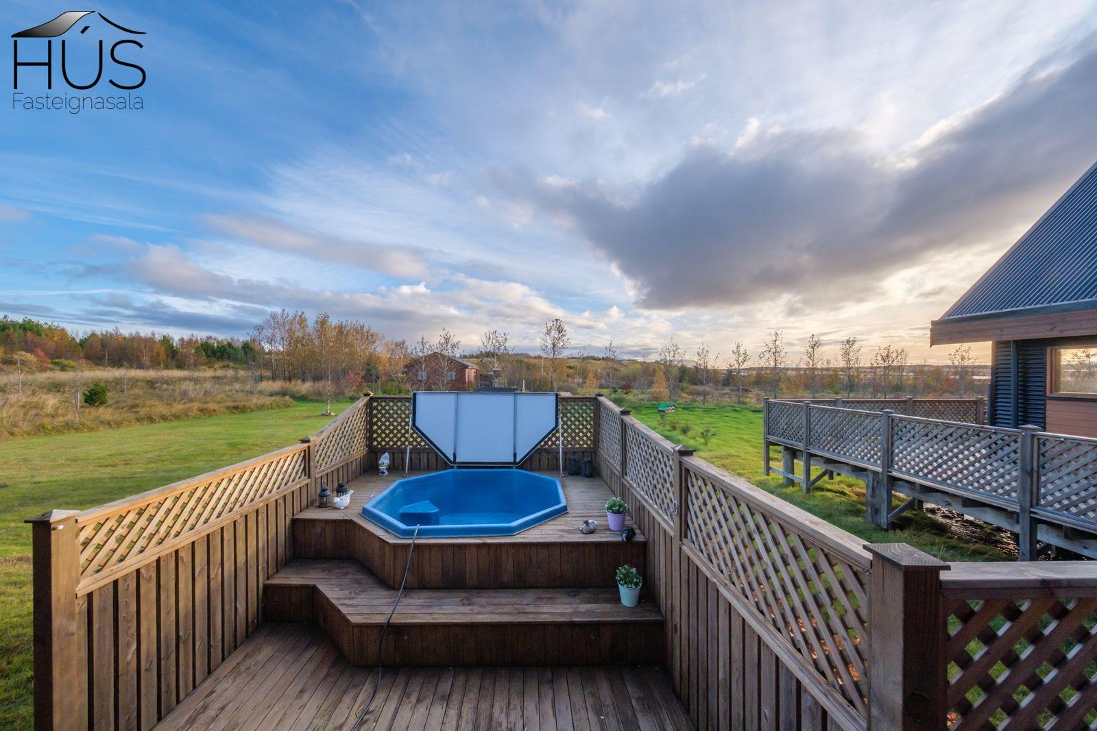 Pallur: Stór timburpallur með heitum potti