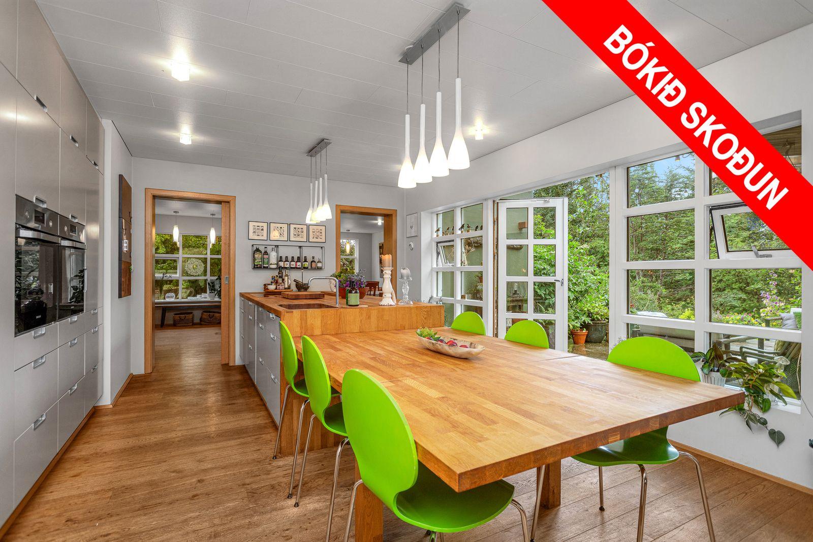 Úr stofu er innangengt í glæsilegt og einstaklega rúmgott