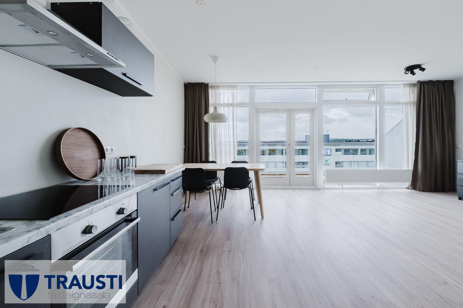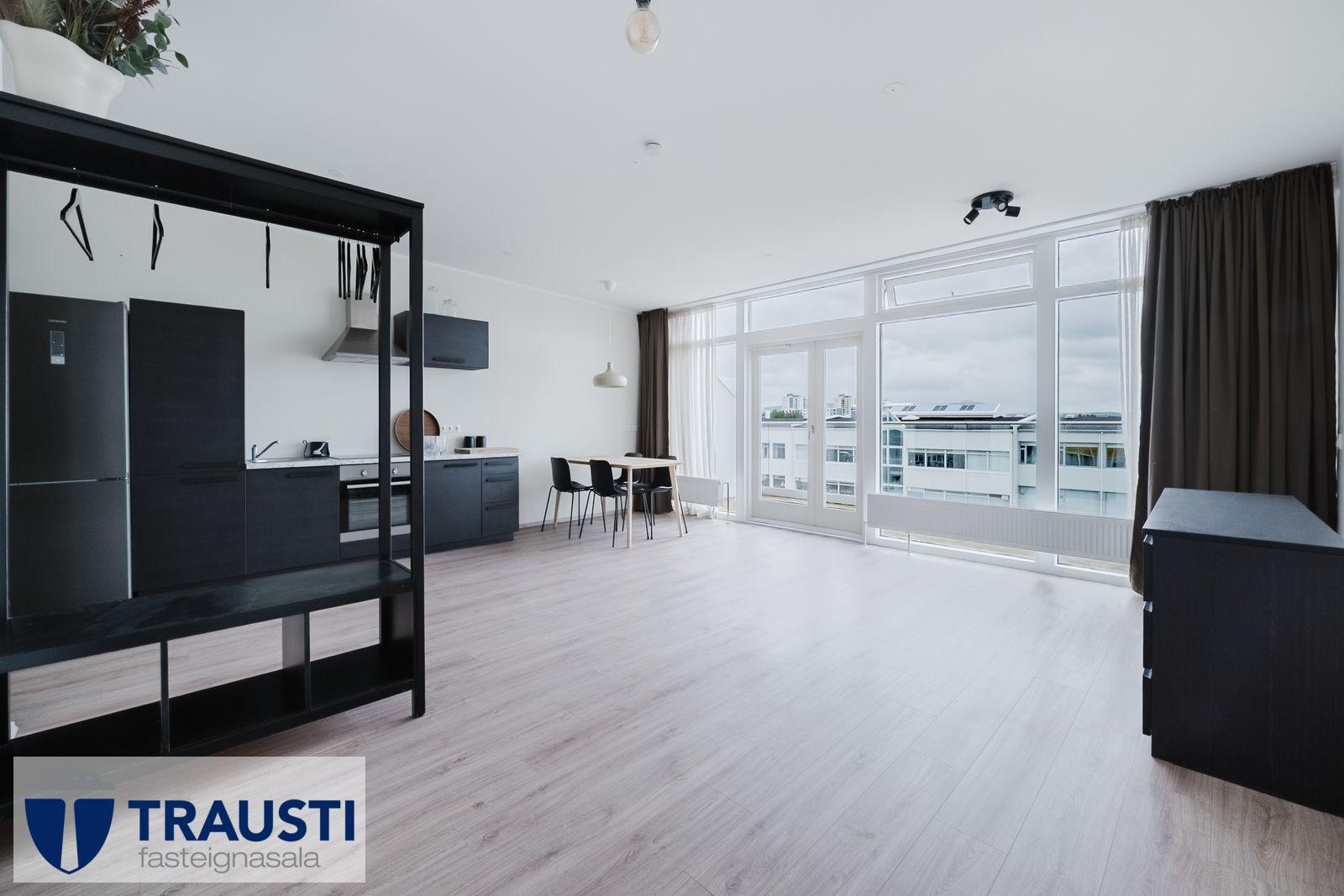 Trausti fasteignasala kynnir einstaklega vandaða og fallega stúdíóíbúð á 4. hæð í lyftuhúsi. Aukin lofthæð í íbúðinni. Eignin verður laus til afhendingar við kaupsamning.