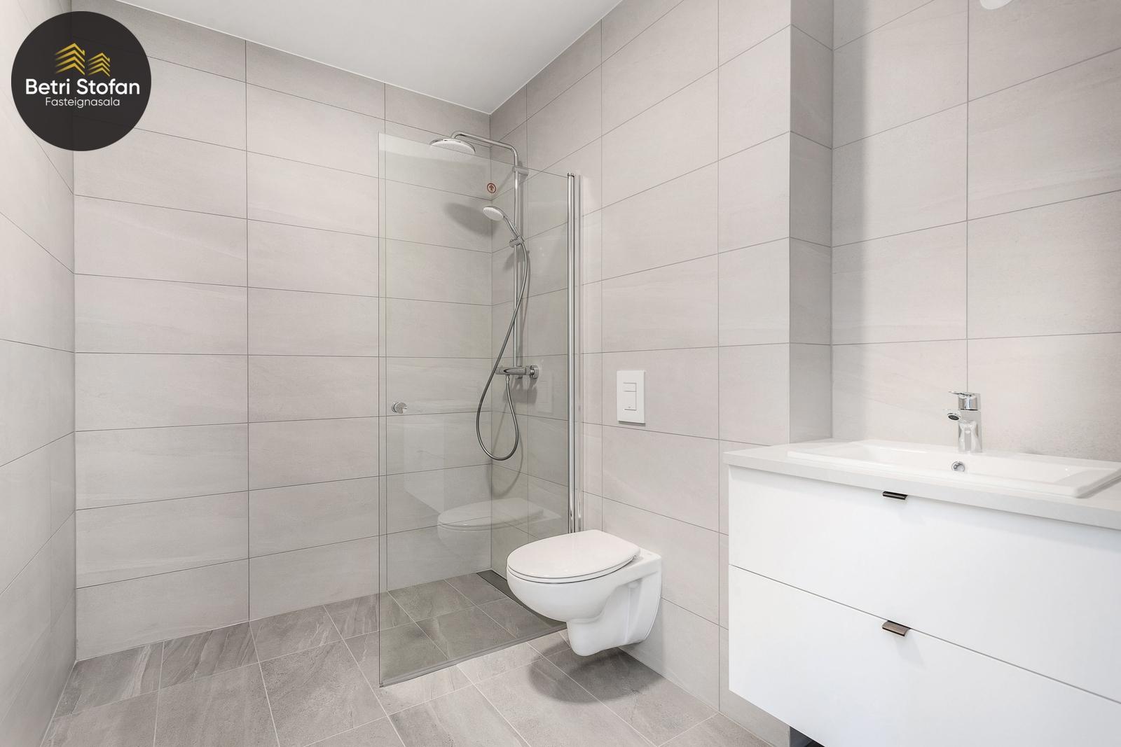 Baðherbergi: Vegghengt salerni, sturta með flísalögðum sturtubotni. Allur búnaður er frá Grohe.