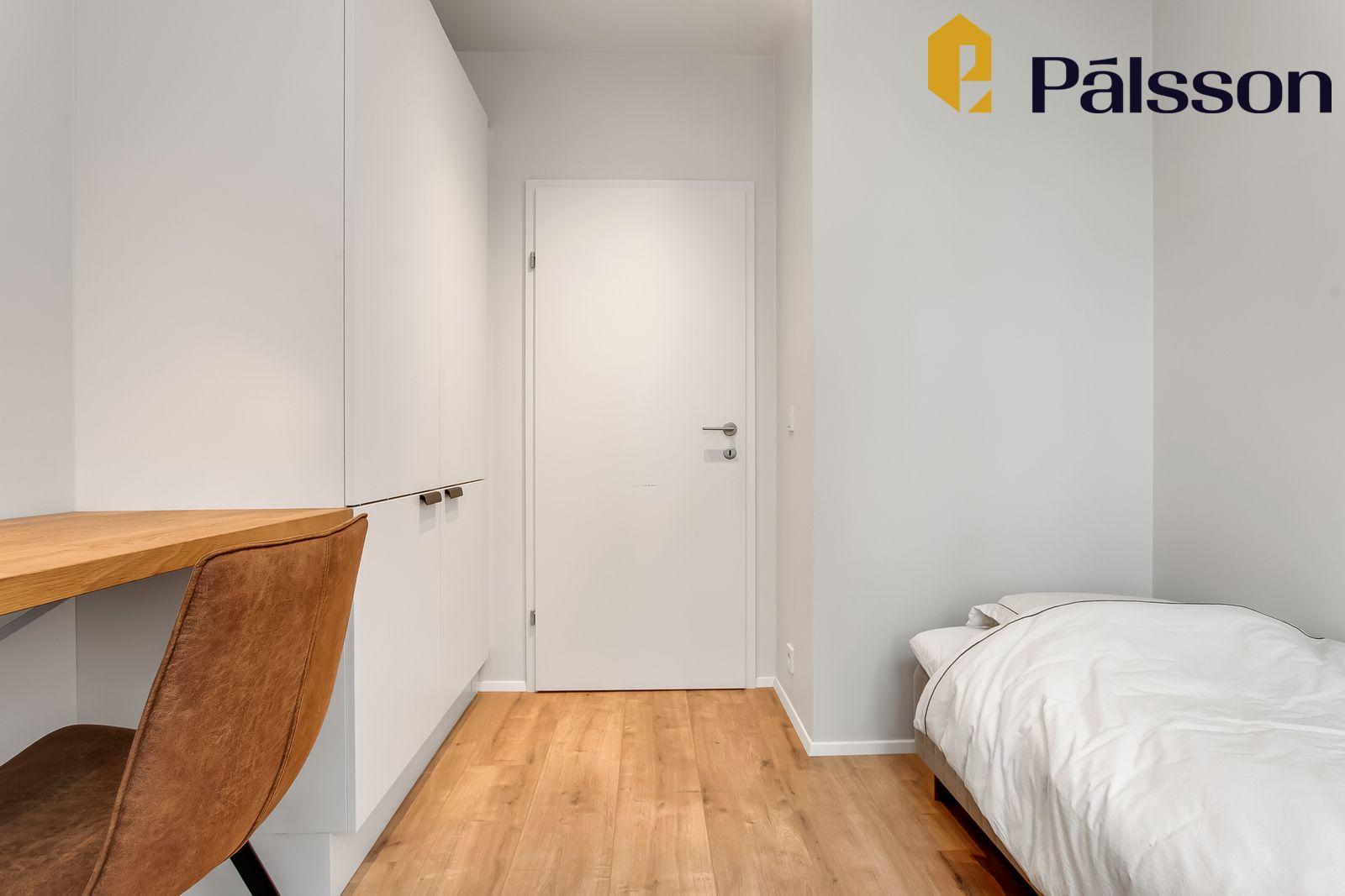barnaherbergi með skápum. Fallegt harðparket á öllum gólfum nema baðherbergi en það er flísalagt.