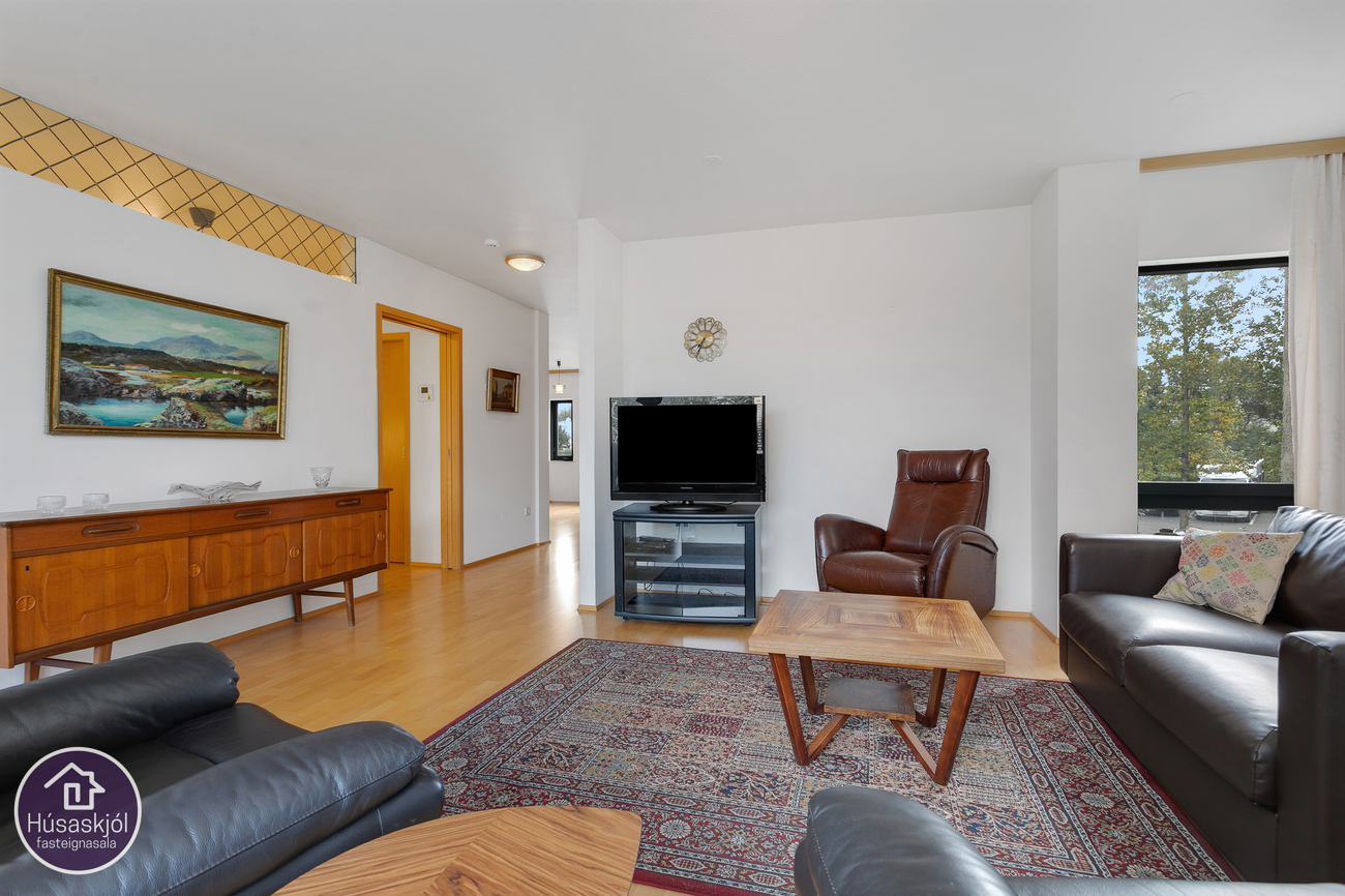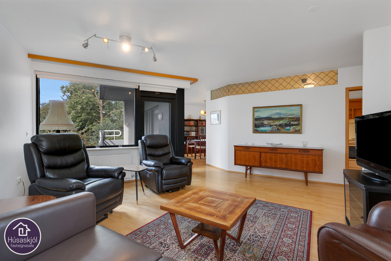 Stofan er parketlögð og útgengt út á góðar svalir.