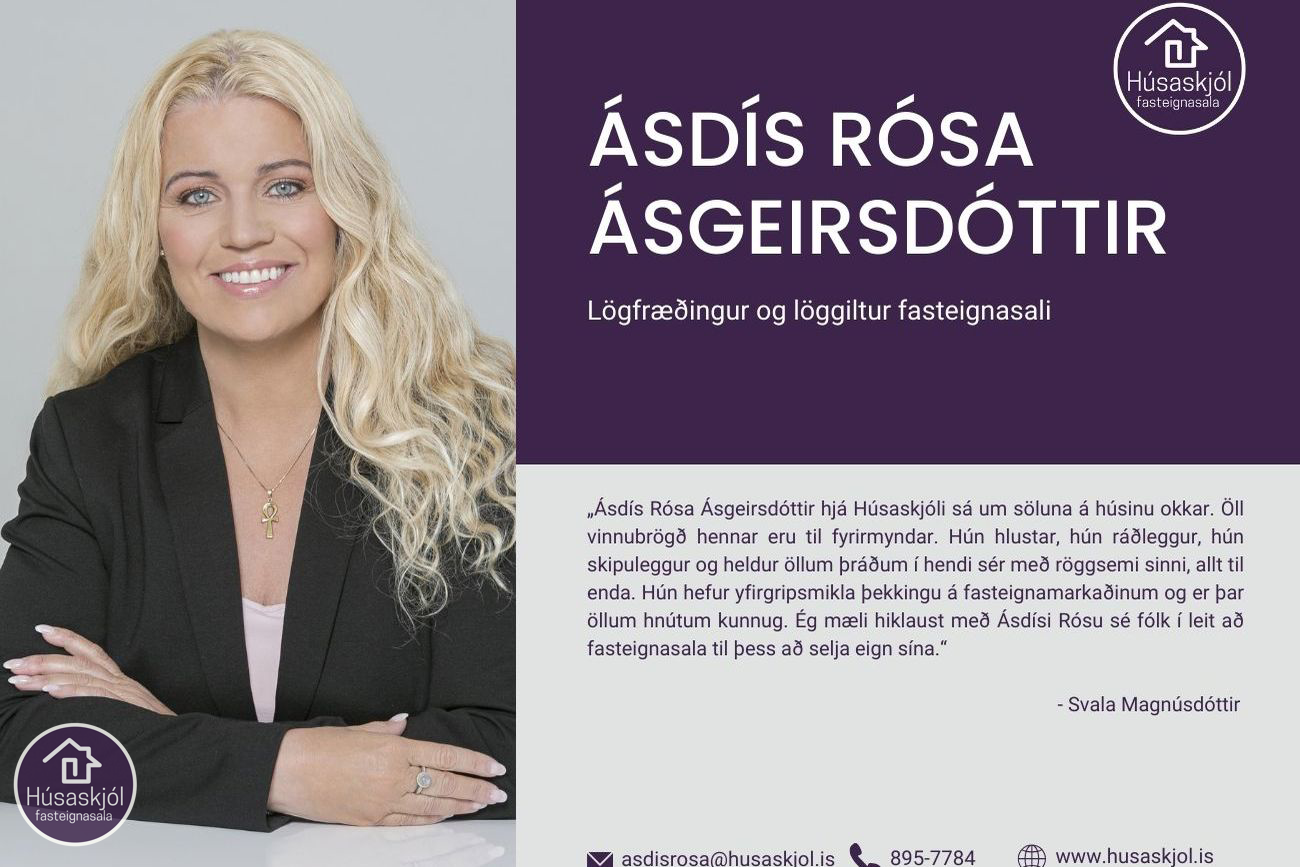 Allar nánari upplýsingar veitir Ásdís Rósa Ásgeirsdóttir, lögfræðingur og löggiltur fasteignasali og félagsmaður í félagi fasteignasala netfang: asdisrosa@husaskjol.is eða í síma: 895-7784