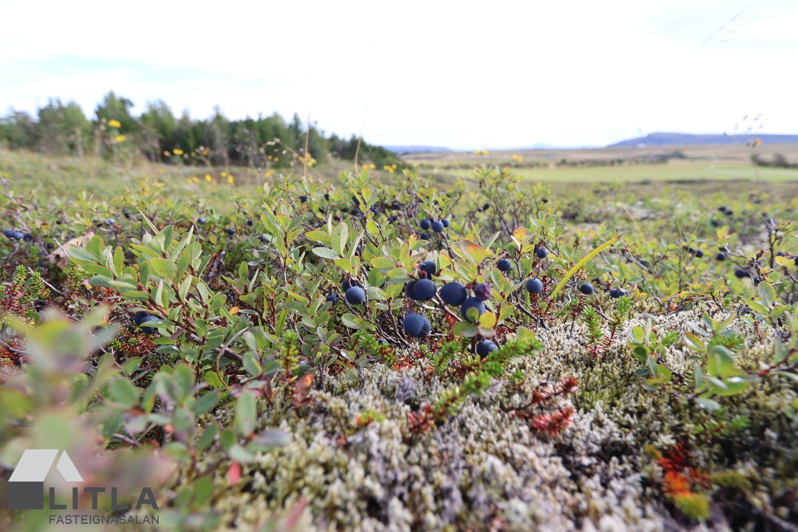 Lóðin er gróið með trjám og öðrum gróðri, einnig er nokkuð um lyng og vaxa bláber og krækiber á lóðinni