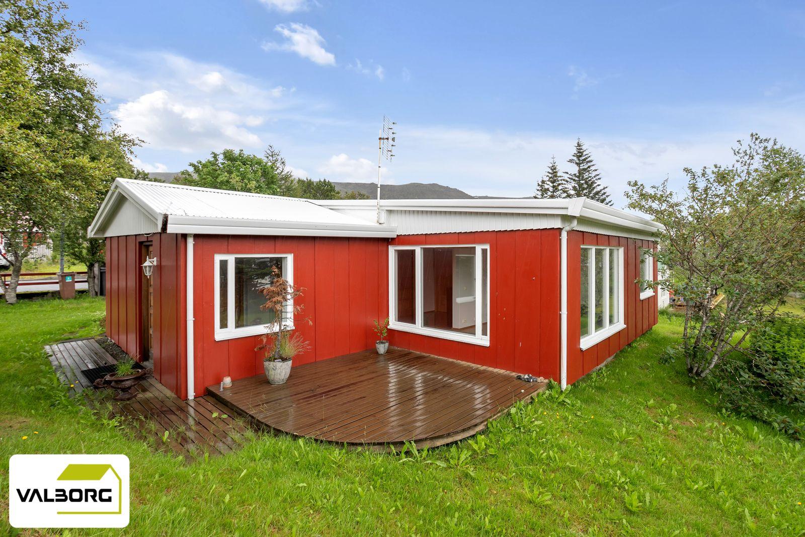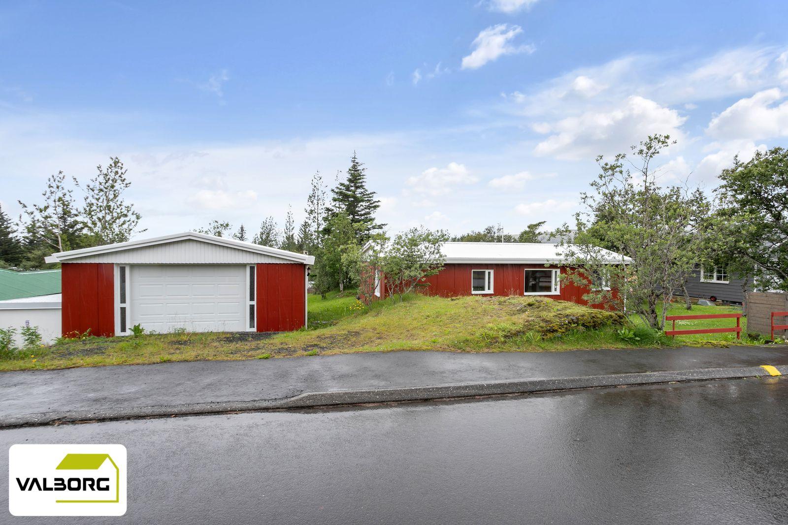 Um er að ræða einbýlishús með bílskúr á stórri lóð, með þremur svefnherbergjum.