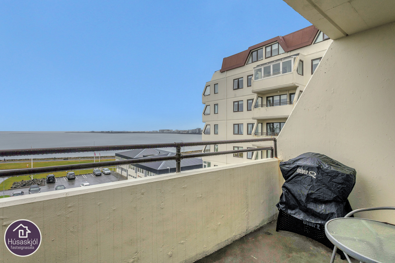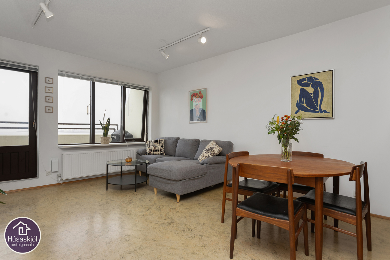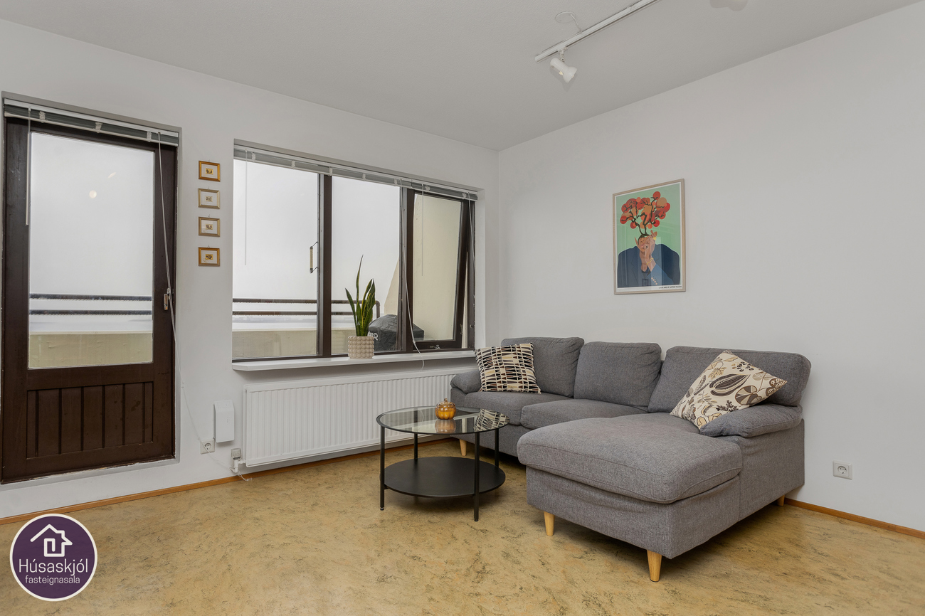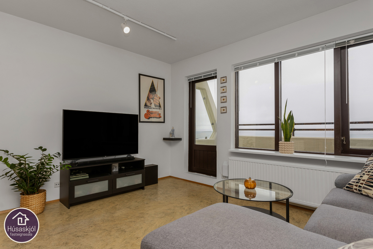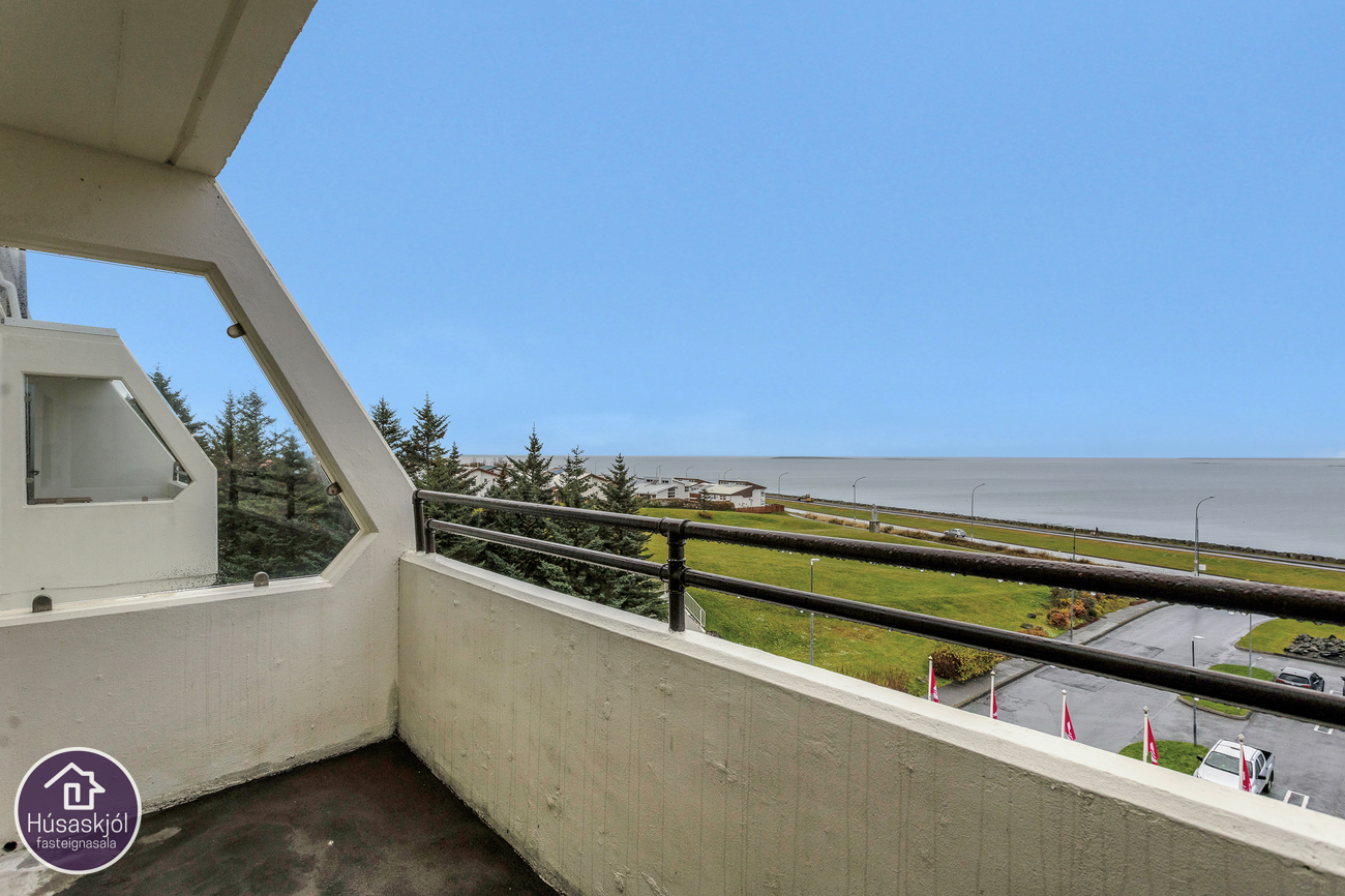 Stofan er með glugga til norðurs og útgengi á stórar svalir. Mjög fallegt útsýni.