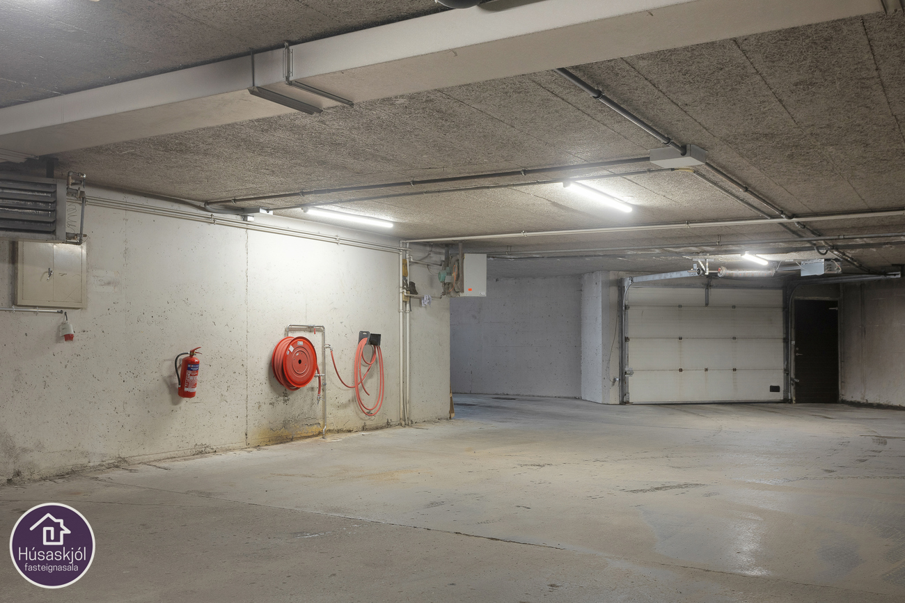 Sér merkt stæði í bílgeymslu við Austurströnd 2-4.