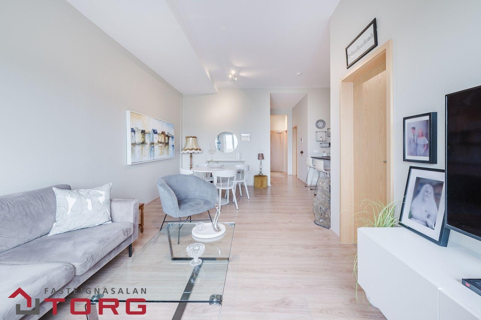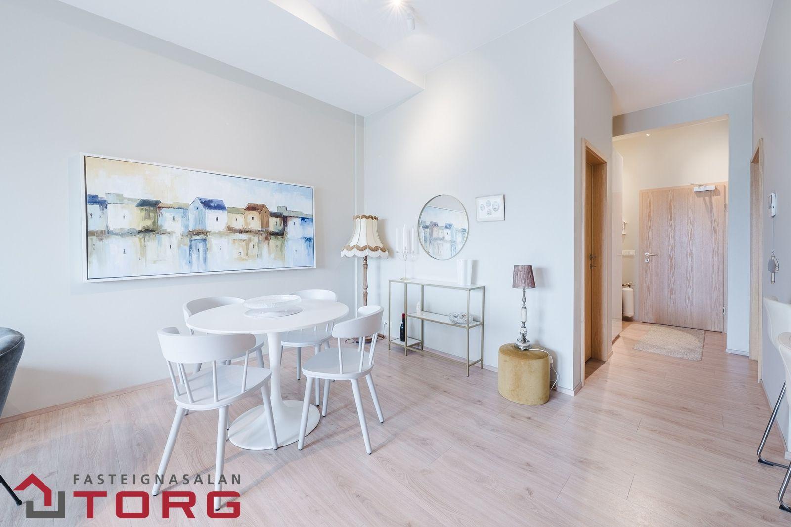 Afar falleg og vel skipulögð 2-3ja herbergja íbúð á annarri hæð með suðursvölum. Íbúðin er með mikilli lofthæð og mjög rúmgóð. Forstofa með stórum fataskápum. Geymsla, gluggalaust herbergi (vinnuaðstaða), eldhús, stofa, borðstofa, baðherbergi, svefnherbergi, svalir. Næg bílastæði.
