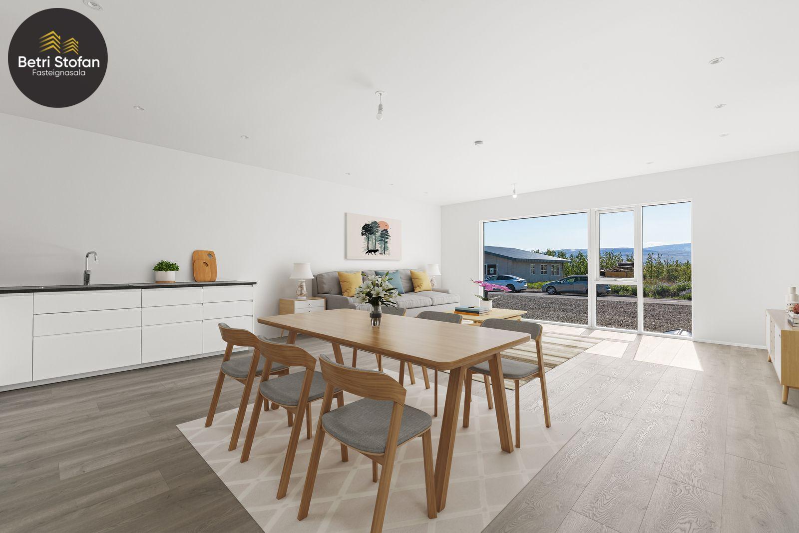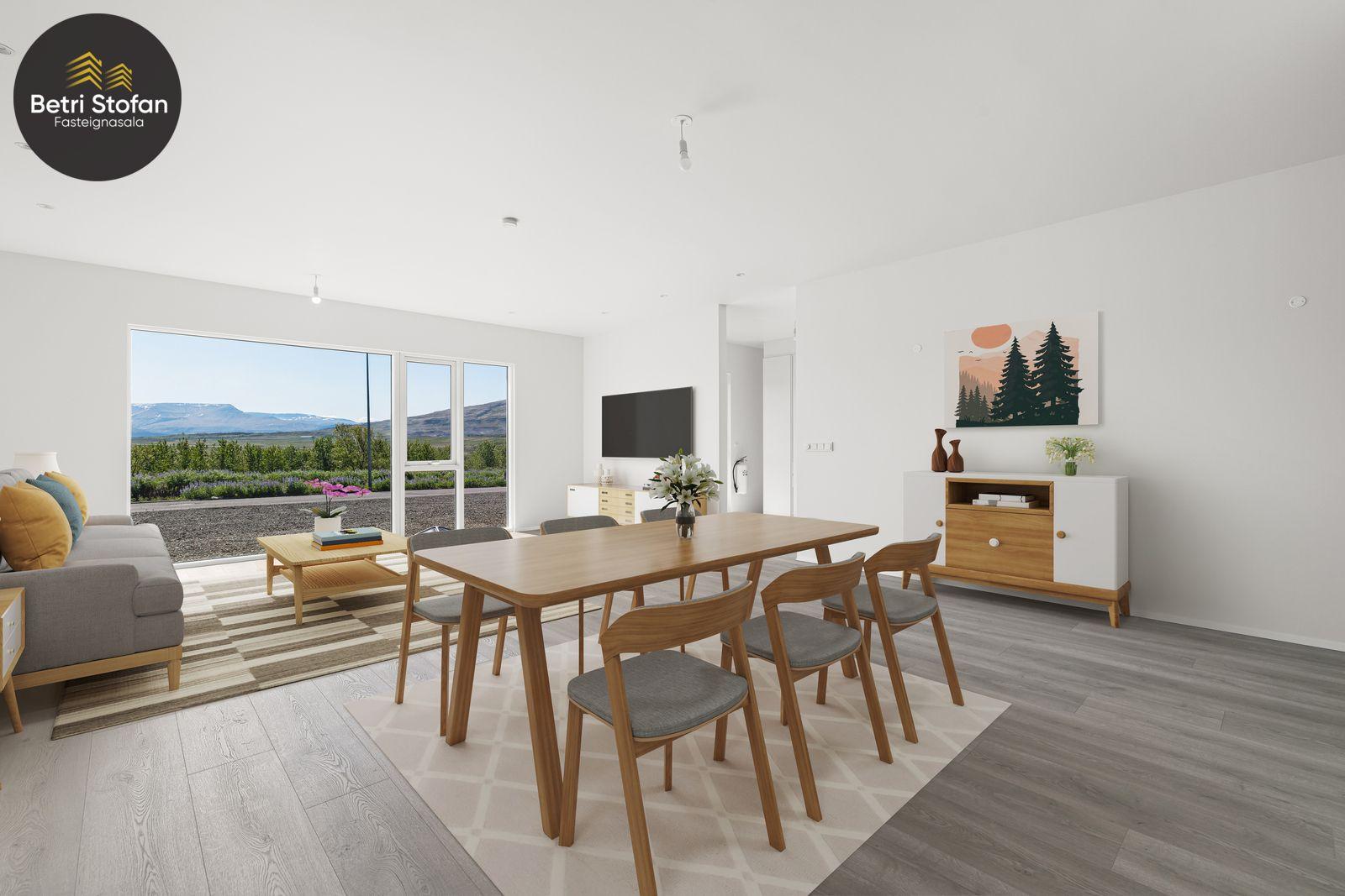 Bókið skoðun hjá Dagrún Davíðsdóttir lögg. fasteignasala í síma 866-1763, dagrun@betristofan.is eða Hreiðari Levý lögg. fasteignasala í síma 661-6021, hreidar@betristofan.isNýtt, fallegt og vel skipulagt raðhús í rólegu og fjölskylduvænu hverfi í Melahverfi í Hvalfjarðarsveit umvafið kyrrð og náttúruperlum. Stærri þéttbýliskjarnar ekki langt frá með allt það sem þeir hafa upp á að bjóða. Um 10 mínútna akstur er inn til Akranesar, 15 - 20 mínútur til Borganesar og ca. 30 mínútur til Reykjavíkur. Nánari lýsing:Anddyri: með stórum hvítum fataskáp. Innaf anddyri er