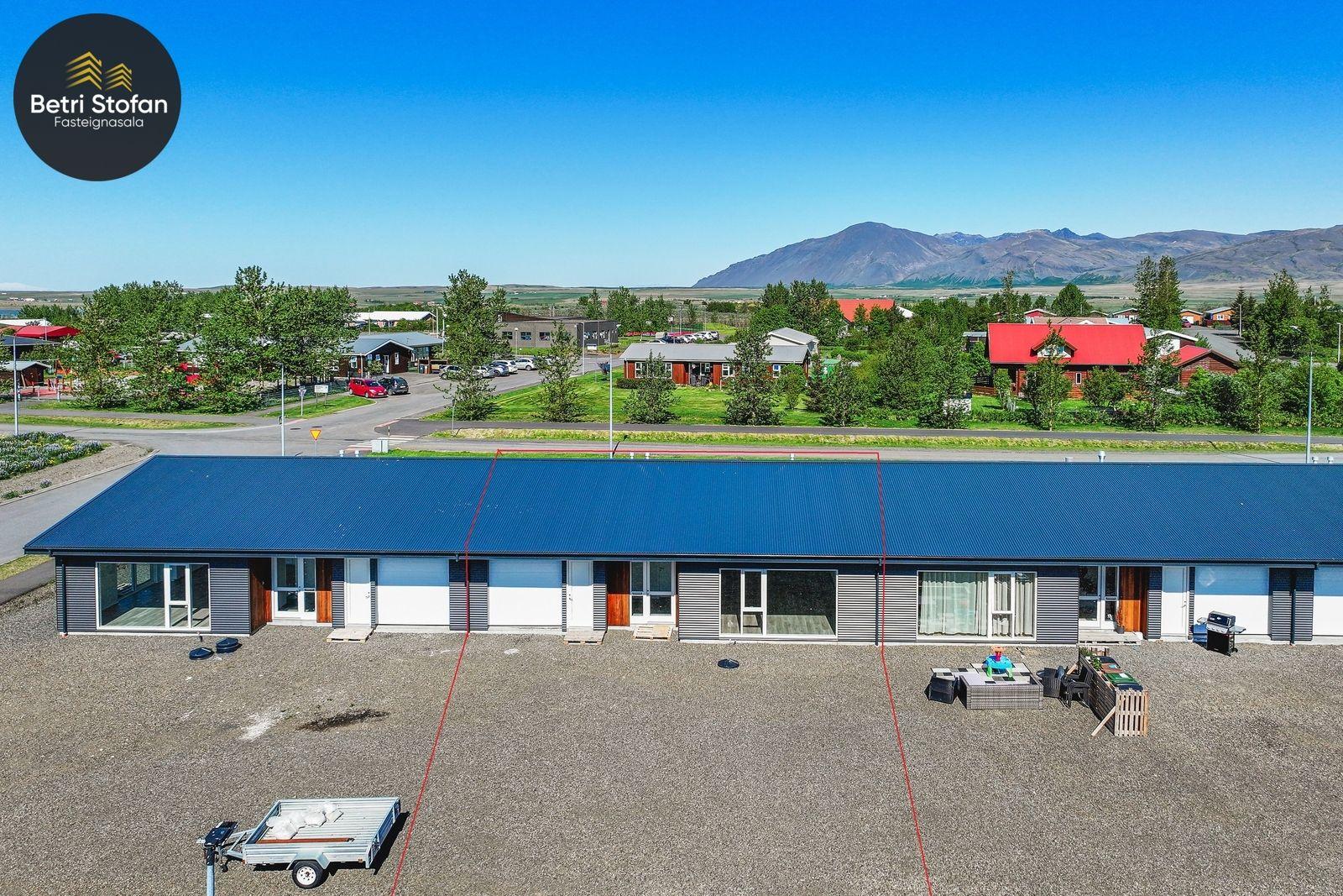 Fallegt, vandað og vel hannað 4ja herbergja raðhús á einni hæð með bílskúr í sveita- og náttúrusælu í grend við þéttbýliskjarna. Hvalfjarðarsveit er öflugt sveitarfélag með góða innviði og grunnþjónustu. Samfélagið er fjölskylduvænt með fjölbreyttu atvinnulífi, menningu, stórbrotinni náttúru og landslagi. Melahverfi er einn af 3 þéttbyliskjörnum sveitafélagsins og sá fjölmennasti með 144 íbúa. Að auki er fjöldi frístundasvæða í sveitarfélaginu og eru frístundahús um 590.