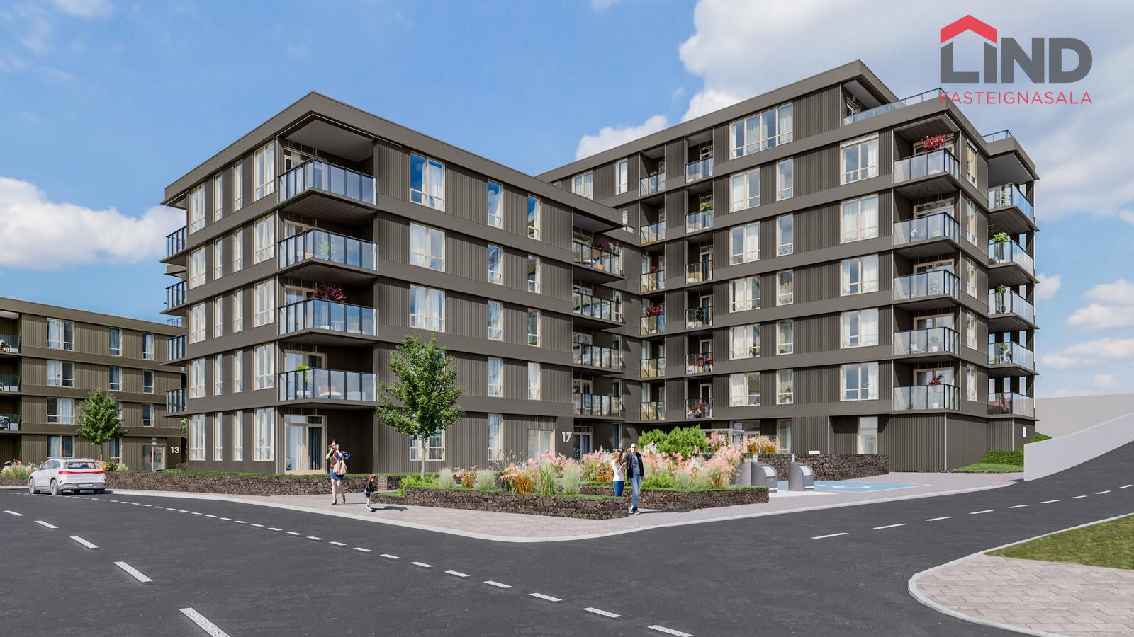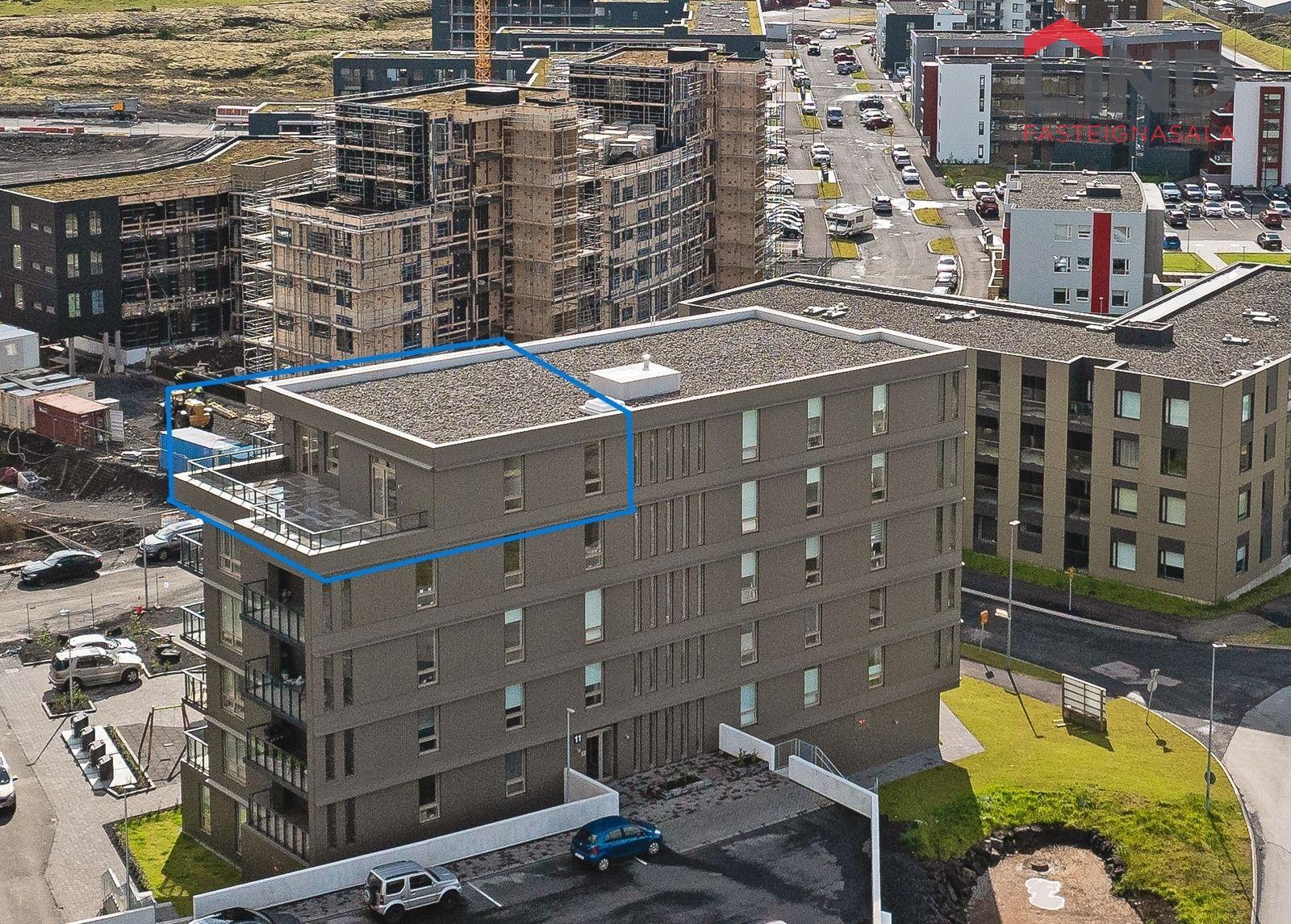 Íbúð 601: 133,9 fm 4 herbergja íbúð á efstu hæð ásamt tveimur stæðum í bílageymslu. Íbúðin er 126 fm ásamt 7,6 fm geymslu. Tvö baðherbergi og 69.9 fm þaksvalir
