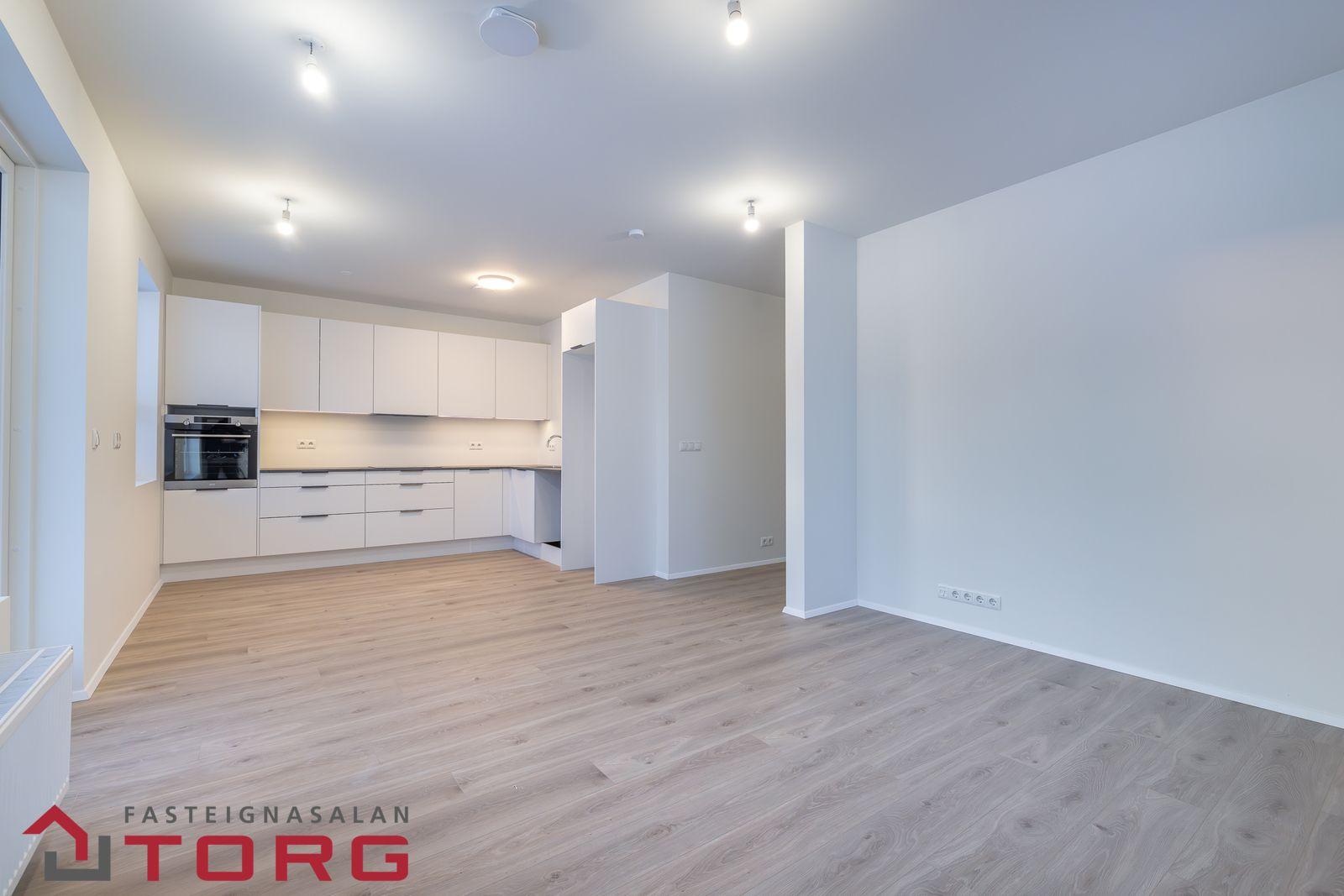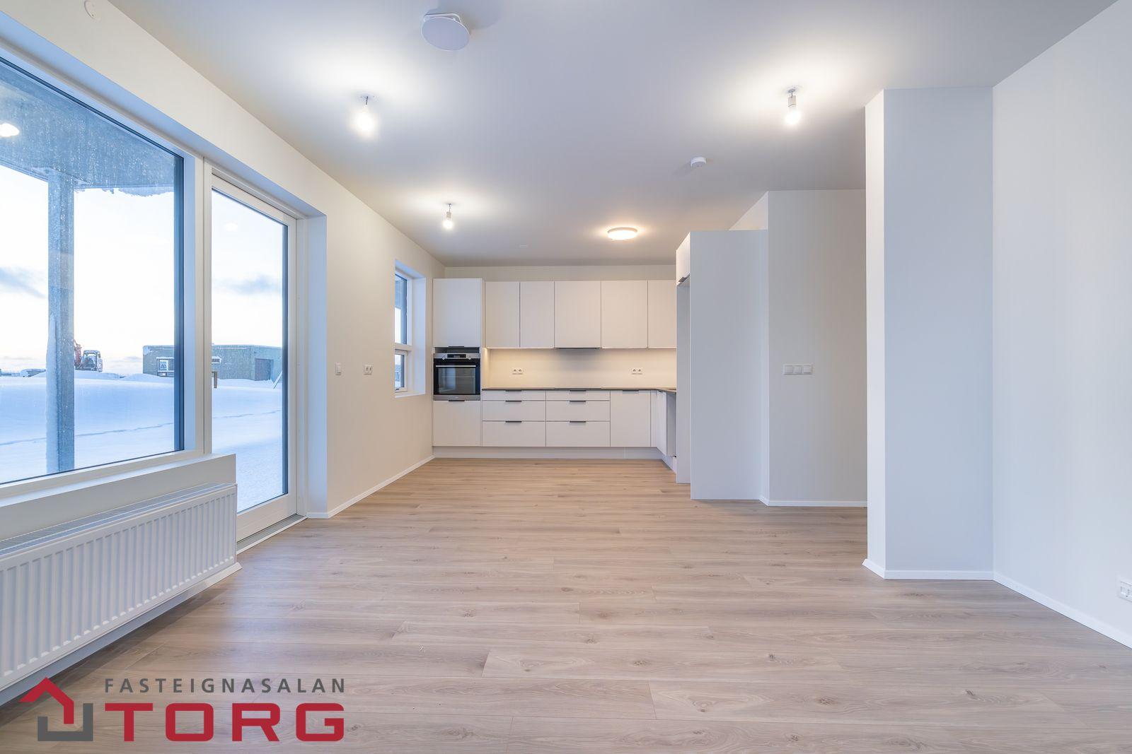 Íbúðin skilast fullbúin með gólfefnum, parket á stofu, eldhúsi og herbergjum og flísar á baðherbergi.
