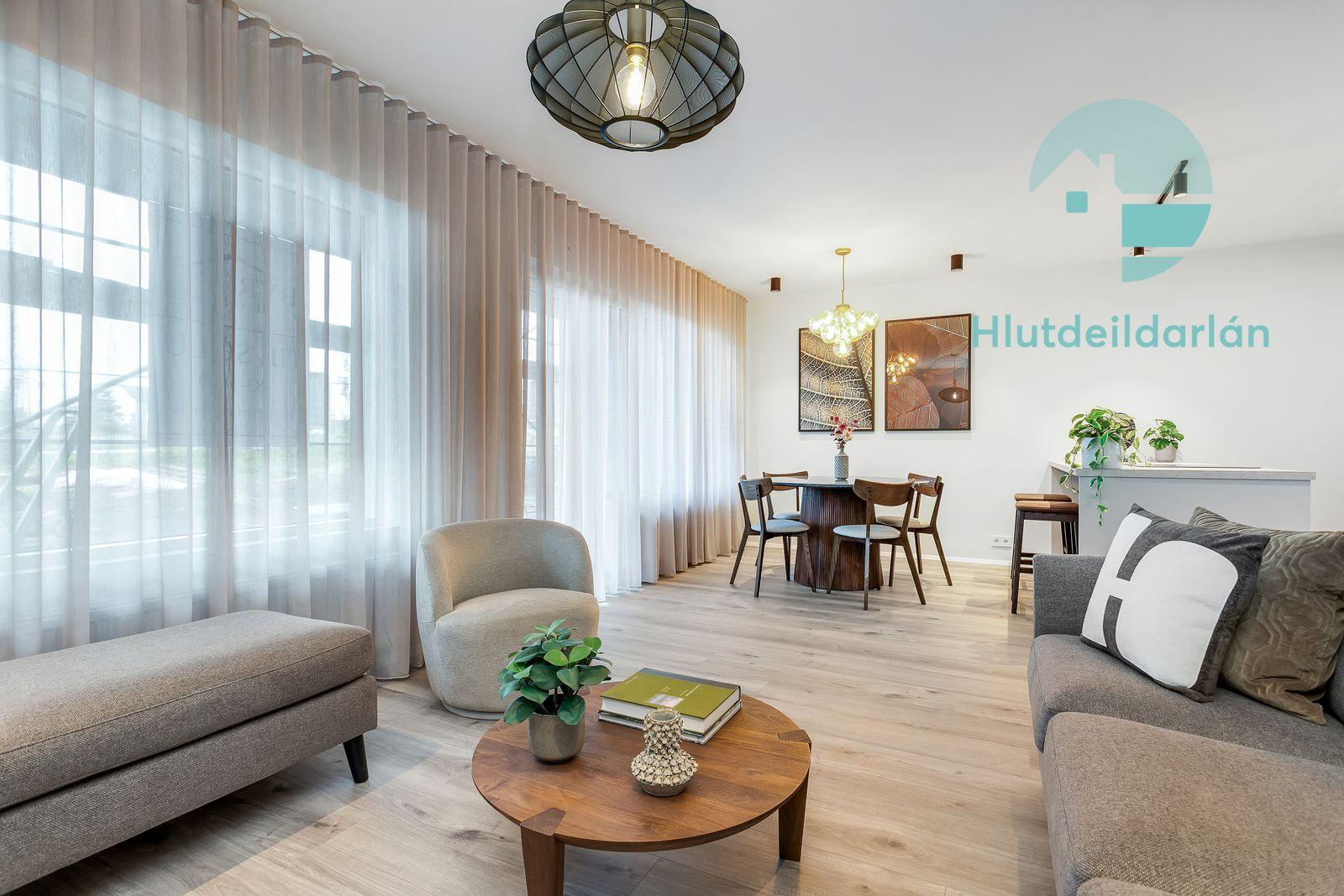 Eldhús: Með vandaðri Voké-III innréttingum. Öll eldhústæki fylgja frá Rafha (innbyggður kæliskápur með frysti, innbyggð uppþvottavél, spansuðu helluborð, sjálfshreinsandi bakaraofn).