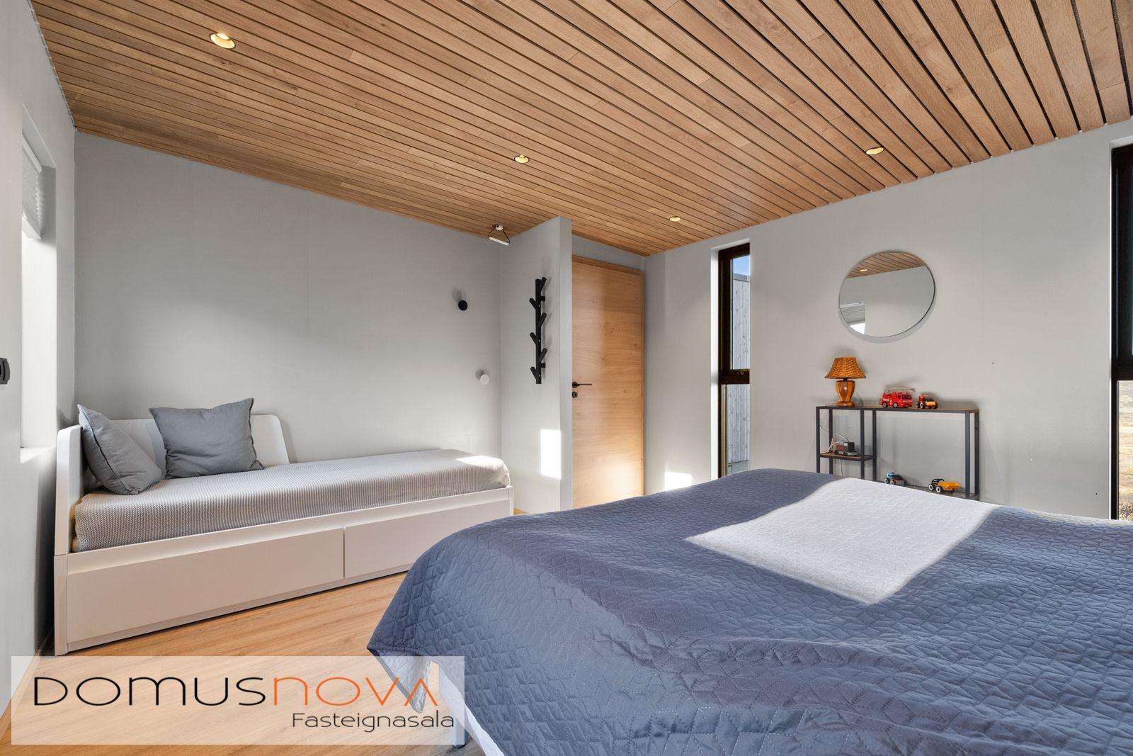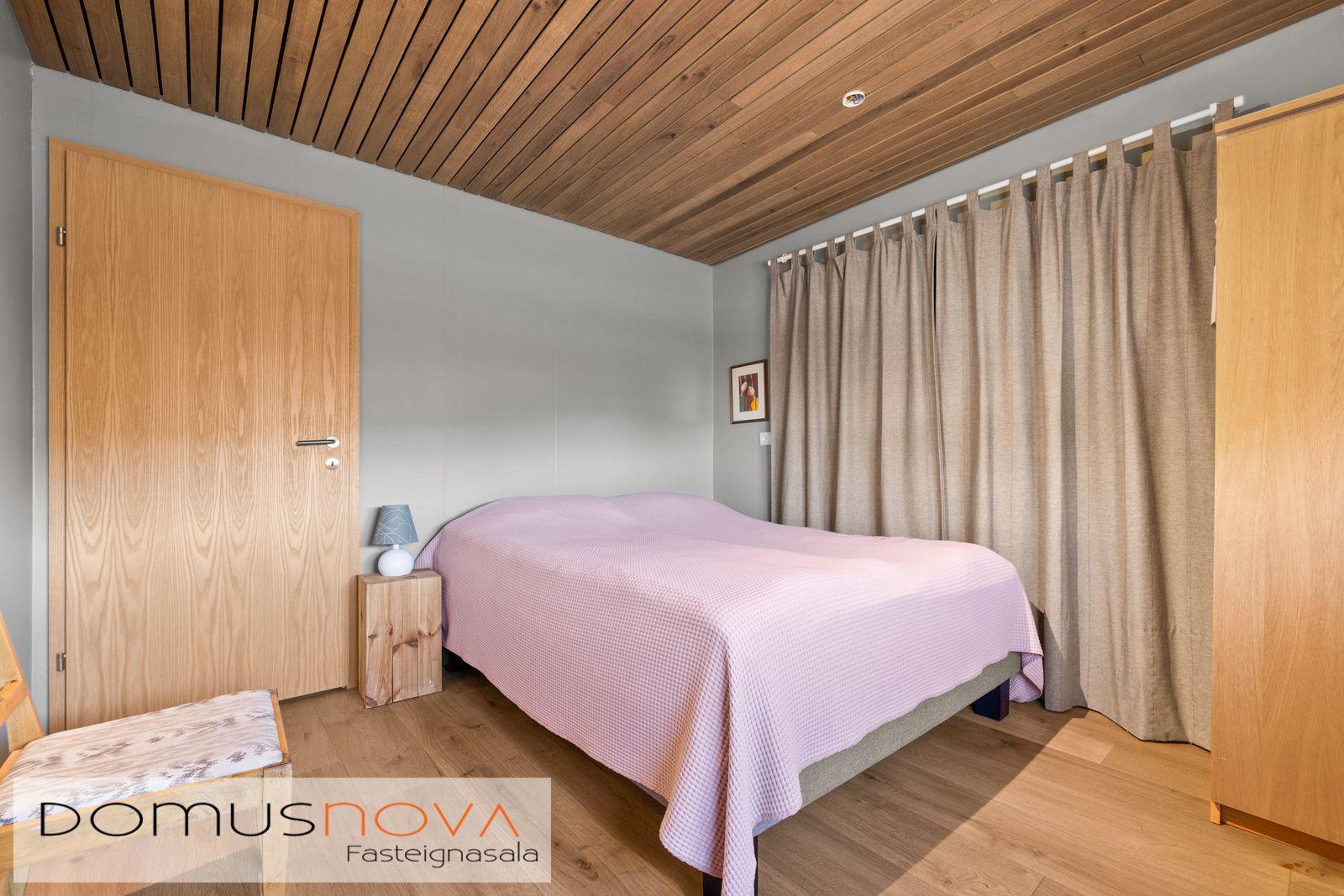 Svefnherbergi er mjög rúmgott og innaf því er geymsla og inntaksrými fyrir kyndingu og 200 lítra hitakút, sem sér allri eigninni fyrir nægu vatni.